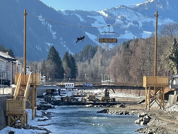 (Faschingsbeitrag) Der Iselsteg kann erst Ende April/Anfang Mai geöffnet werden. Das motivierte zu originellen Überbrückungs-Möglichkeiten.