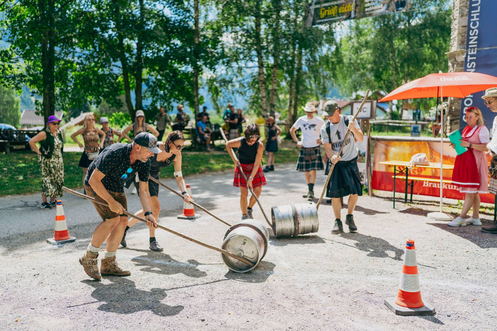 Schon zum 12. Mal warfen sich Trachtenbegeisterte ins Dirndl, Lederhose oder den „Kärntner Kilt“ und machten sich gemeinsam auf den Weg in die Natur. Zwar musste der Durchgang durch die beeindruckende Groppensteinschlucht aufgrund von Unwetterschäden aus Sicherheitsgründen entfallen, doch tat das der Stimmung keinen Abbruch. An zwölf Stationen mussten die 50 teilnehmenden Teams ihren Teamgeist, Geschick und Humor unter Beweis stellen (Bild). Am Abend ging es weiter mit Unterhaltung und Kulinarik. Highland-Spirit pur!