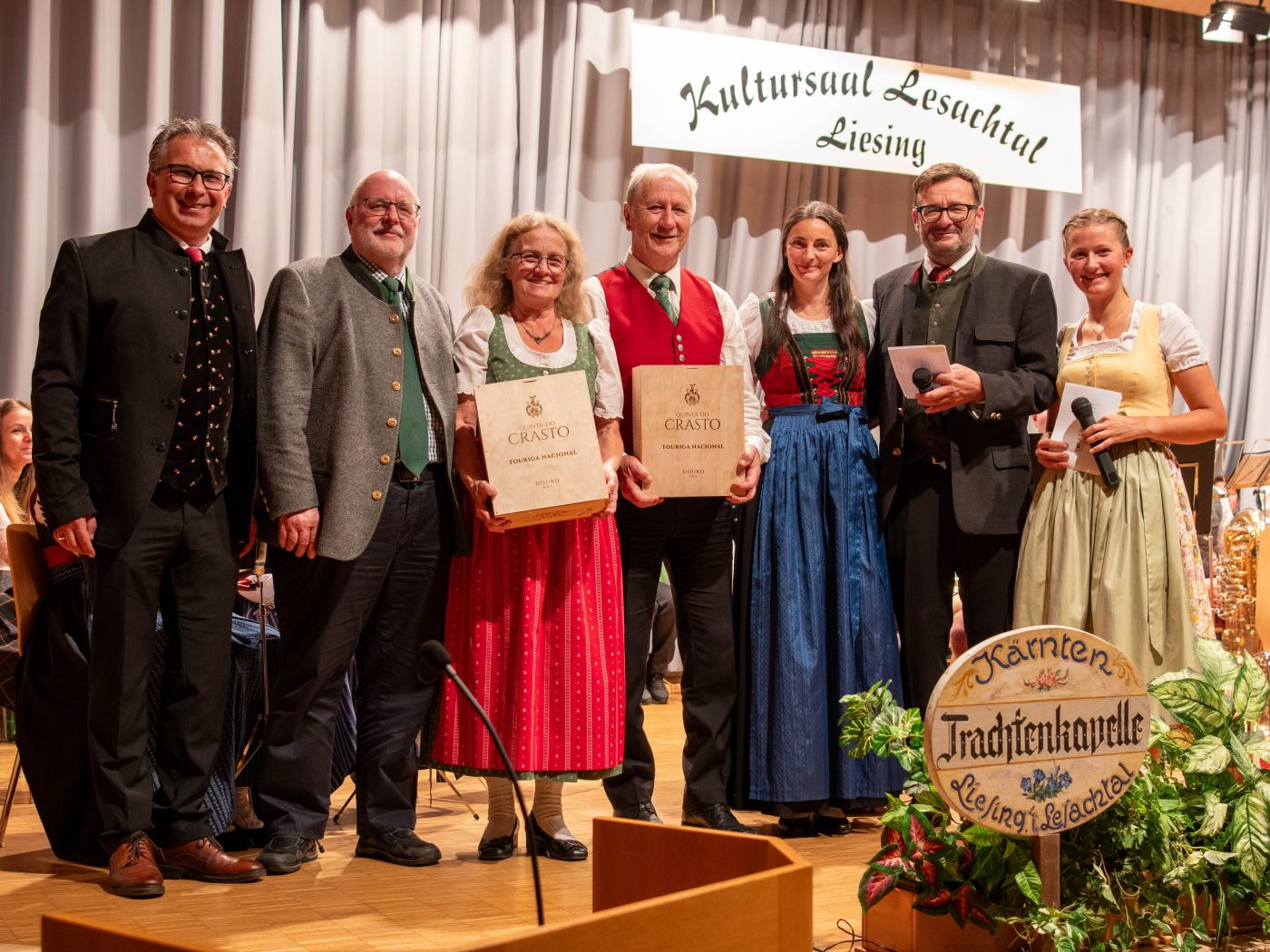 Vorne vlnr.: Lesachtaler Heimatklang mit Johann Unterguggenberger, Werner und Gerhard Lexer, Markus und Anton Wilhelmer und Hannelore Christler.