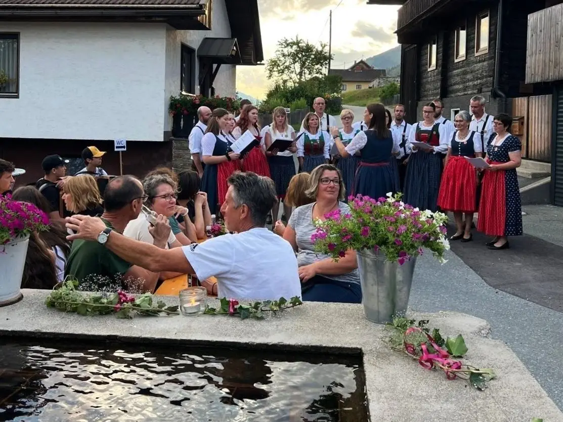 Am ersten Freitag im Juli, gerade recht vor dem Wetterumschwung, wurde in „Gottes freier Natur“ beim Dorfbrunnen zu St. Jakob groß gefeiert.