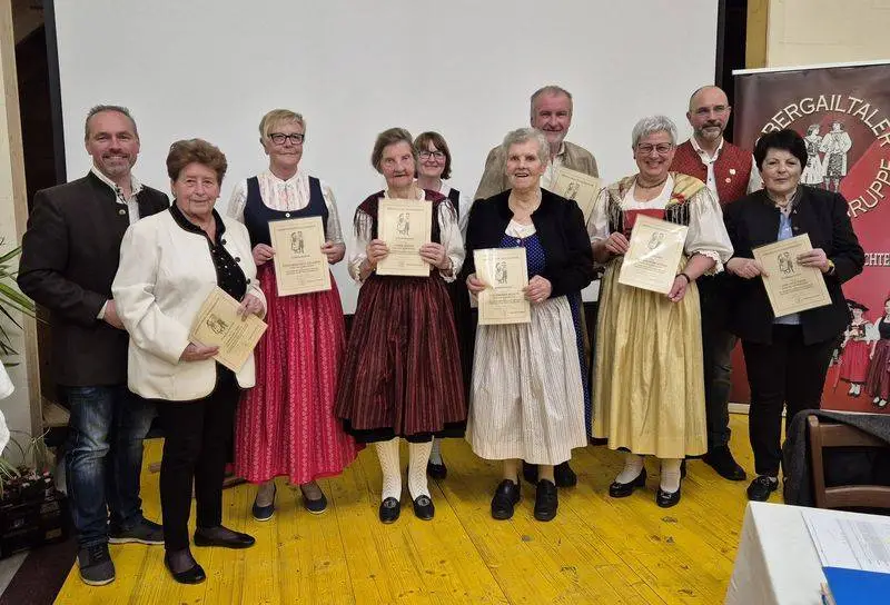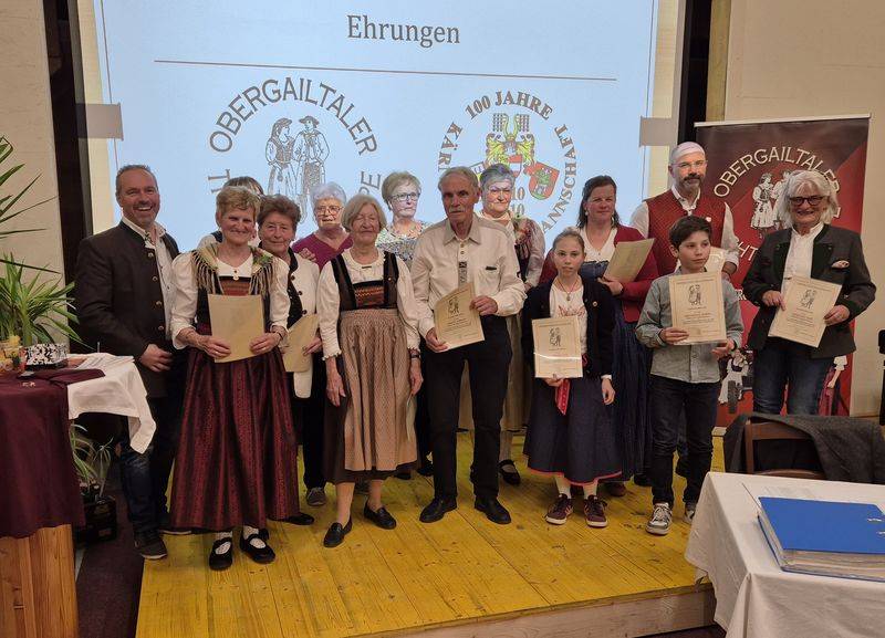 Bei der diesjährigen Jahreshauptversammlung begrüßte Obfrau Waltraud Puntigam neben den zahlreich erschienenen Mitgliedern auch die Bürgermeister Josef Zoppoth (Kötschach) und Markus Salcher (Kirchbach). Die Ortsgruppenleiterinnen aus Kötschach (Helga Mörtl), Dellach (Birgit Stockner), Kirchbach (Veronika Themeßl-Huber), Rattendorf (Elke Dutter), Watschig (Ingrid Regittnig-Tillian), Hermagor (Waltraud Puntigam) und dem Plattlerchef der Hermagorer Plattlerbuam (Peter Puntigam) berichteten über die Aktivitäten des vergangenen Vereinsjahr.Bei der Vorschau auf das Jahresprogramm wurde besonders zum „Zomtrochtn“ am 18. Mai ab 14 Uhr in Kötschach mit einem ökumenischer Gottesdienst und einem „Trachtlichen Picknick“ eingeladen. 60 Personen freuten sich über Ehrungen für 10-, 25-, 30- sowie 40jährige Mitgliedschaft bei der Obergailtaler Trachtengruppe. Für die musikalische Umrahmung der JHV sorgten mit Luisa Schmid (Klavier), Laura Zojer und Marlen Kogler (Hackbrett) und Paul Zojer (Steirische Harmonika) Kinder der OTG/Ortsgruppe Kötschach. Mit dem gemeinsamen Singen des Kärntner Heimatliedes klang der Abend aus.