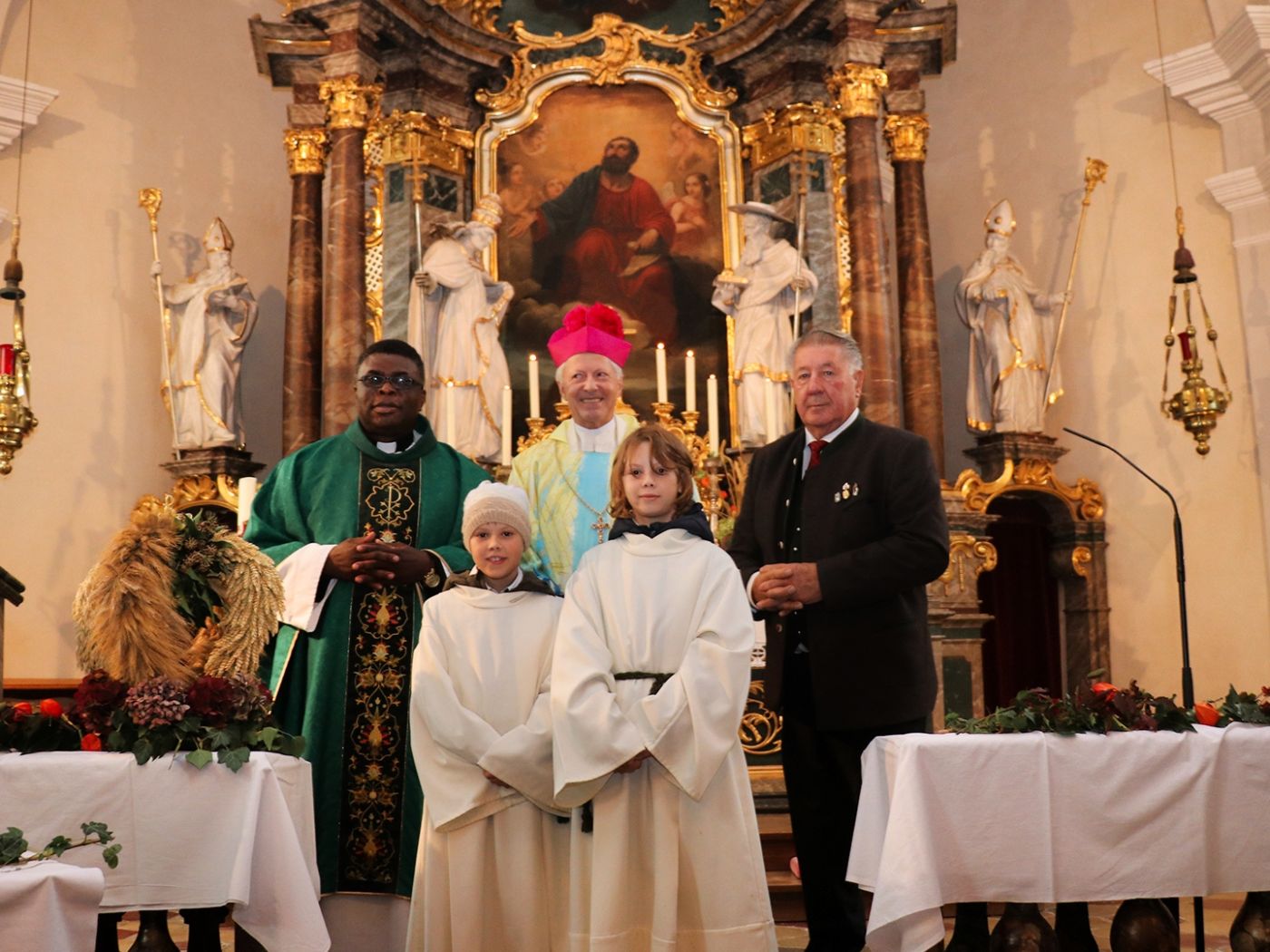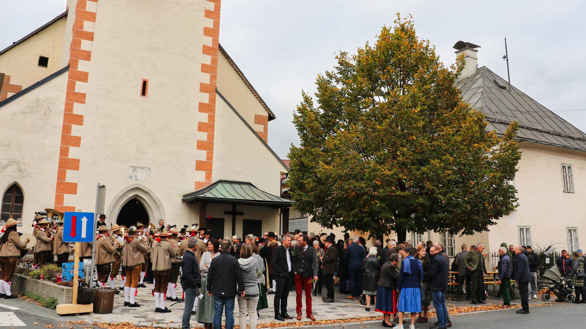 Was für ein Jubiläum! Traditionell weckte am gewohnt dritten Sonntag im Oktober die Trachtenkapelle Mauthen unter der Leitung von Viktoria Pedarnig den Ort. Kein geringerer als Bischofsvikar Domprobst Monsignore Dr. Engelbert Guggenberger war anlässlich dieses würdigen Jubiläums im Oberen Gailtal zu Gast, um mit Ortspfarrer Dr. Sergius Duru dieses seltene Fest zu begehen, Heilige Messe, Erntedank, Pfarrjubiläum und der Weltmissionssonntag an ein und demselben Tag – ein wahrhaft festlicher Anlass! Besonderer Dank gilt den Trachtenfrauen für den wunderschönen Kirchenschmuck, der Pfarre Mauthen selbst und allen, die in irgendeiner Form zum Gelingen des Festes beigetragen haben. Nach der hl. Messe bereitete der Pfarrgemeinderat mit Obmann Andreas Druml eine Agape. Freilich lud das Wetter nicht gerade für ein Outdoorprogramm ein, aber die umliegenden Gastwirtschaften erfreuten sich großen Zuspruchs. Anlässlich des Jubiläums hat die Pfarre gemeinsam mit dem Pfarrgemeinderat auch eine Festschrift herausgegeben, die beim Festgottesdienst auflag und in gedruckter Form beim Pfarrgemeinderat sowie in der Mauthner Kirche gegen einen freiwilligen Spendenbeitrag erhältlich ist.