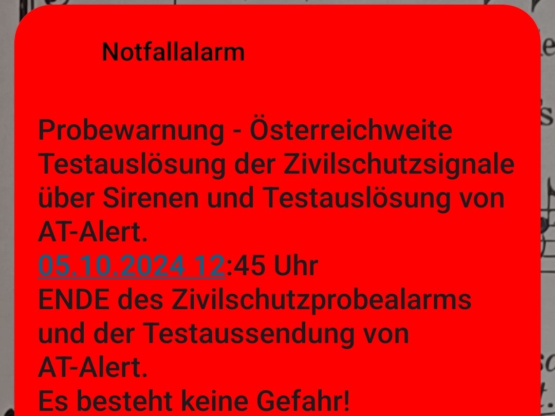 Am Samstag, 4. Oktober 2025, findet in ganz Österreich ein bundesweiter Zivilschutz-Probealarm statt, wieder wird es auch eine Handyalarmierung AT-Alert geben. Ziel dieser Übung ist es, die Bevölkerung mit den Sirenensignalen vertraut zu machen und die technische Funktionsfähigkeit zu überprüfen.