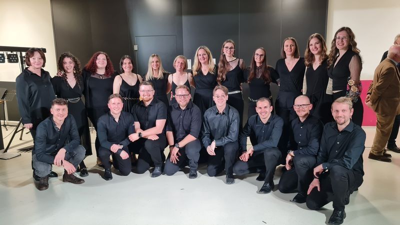 Direktor Erich Huber hieß das Publikum herzlich willkommen und übergab die Bühne an zwei Chöre, die in ihrer einzigartigen Kombination die Brücke zwischen Vergangenheit und Gegenwart schlugen: den aktuellen BORG-Chor und den BORG-Revivalchor, bestehend aus 20 Absolventinnen und Absolventen des MUSIK-Zweigs. Mag. Anja Hafner-Weihs leitete beide Chöre mit spürbarer Leidenschaft.
