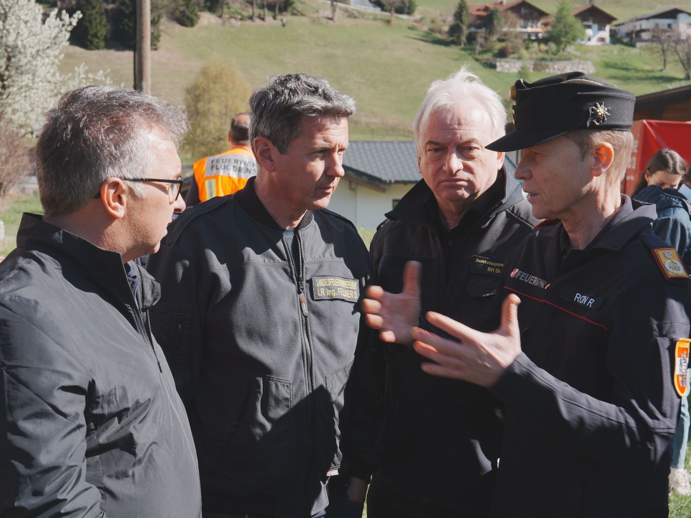 Bezirkshauptmann Pansi hob das „Konzert der Zusammenarbeit“ zwischen allen eingesetzten Kräften hervor. Neben der Feuerwehr, dem Bundesheer, der Flugpolizei und den Rettungskräften sei nun auch die Bergrettung hier, um den bald beginnenden Bodeneinsatz zu unterstützen. „Es ist uns gelungen, Gefahren für Leib und Leben abzuwehren“, so der Bezirkshauptmann, der betonte, dass es beim bisherigen Einsatz auch keine Verletzten gab. Bedarf an Hubschraubern werde man durch die enorme Größe der betroffenen Fläche weiterhin haben, das sei auch schon mit Bundesheer und Flugpolizei besprochen worden. Bisher gebe es auch kein Wasserproblem.