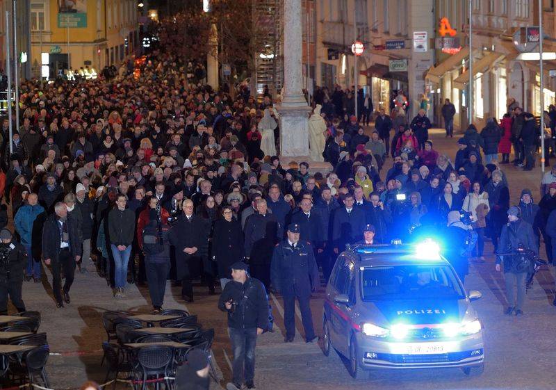 Unter ihnen befand sich mit LH Peter Kaiser, LH-Stv. Gaby Schaunig, LH-Stv. Martin Gruber, die LR Beate Prettner und Sara Schaar sowie die Landesräte Daniel Fellner und Sebastian Schuschnig auch das gesamte Kärntner Regierungskollegium. Den Opfern ihre Reverenz erwiesen ebenso Bundeskanzler Alexander Schallenberg, Landtagspräsident Reinhart Rohr und Villachs Bürgermeister Günther Albel. Der Trauermarsch führte über die Villacher Stadtbrücke – vorbei an der Stelle des Anschlages – hin zur Stadthauptpfarrkirche St. Jakob. Dort wurde anschließend ein ökumenischer Gottesdienst mit Diözesanbischof Josef Marketz, Superintendent Manfred Sauer und Stadthauptpfarrer Richard Pirker abgehalten.