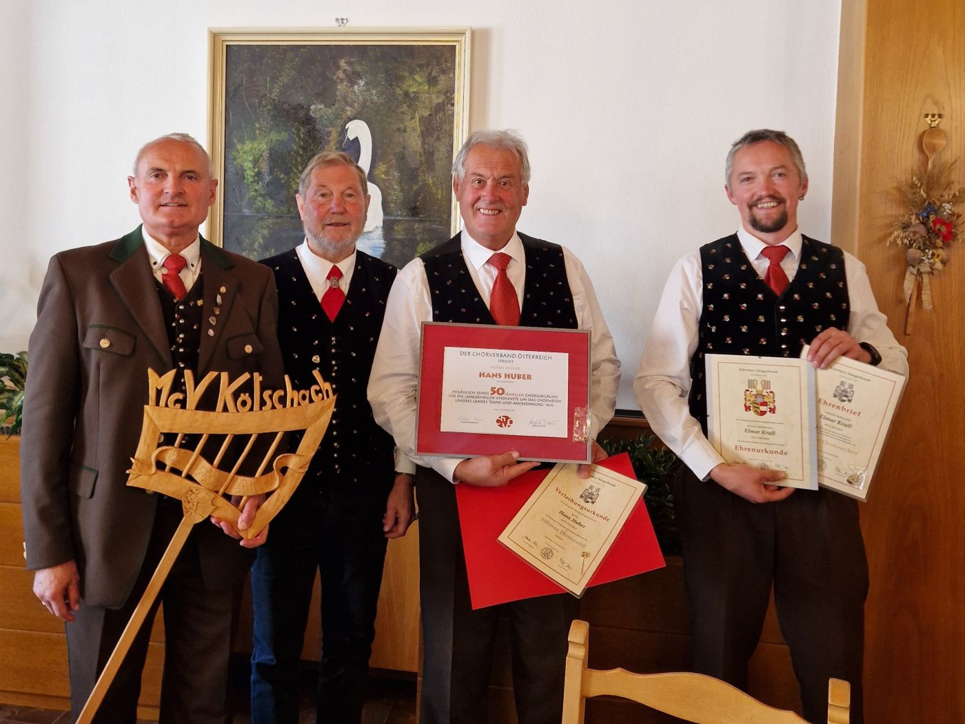 Bei der Jahreshauptversammlung beim Kirchenwirt wurde er vom Österreichischen Chorverband als auch vom Kärntner Sängerbund mit Auszeichnungen bedacht, genauso wie Elmar Krall, der einige Jahre auch Obmann war, für seine Verdienste und bereits auch schon 30-jährige Mitgliedschaft.