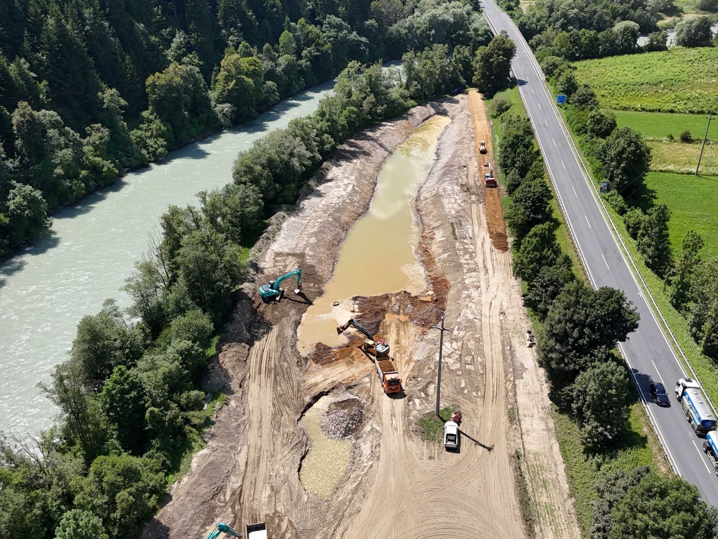 Der Drau mehr Raum geben – dieses Ziel verfolgt das Renaturierungsprojekt, das derzeit zwischen Sachsenburg und Möllbrücke zwischen der Drau der B 100 umgesetzt wird.