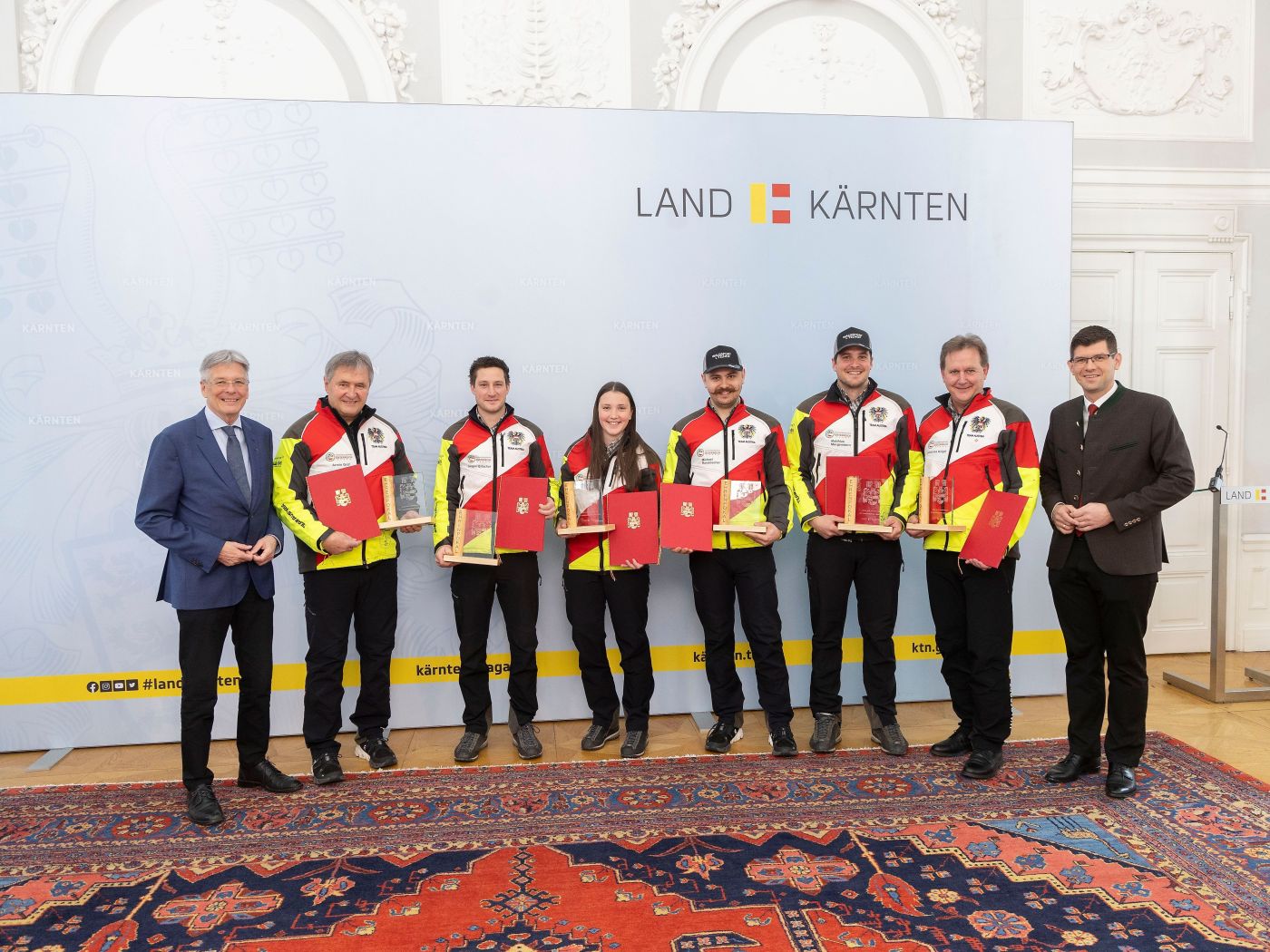Dass ganz Kärnten auf die Teilnehmer, die großteils Absolventen des BZ Litzlhof sind und noch immer von Lehrer und Timbersport-Trainer Armin Graf trainiert werden, stolz ist, zeigte die Ehrung und der Empfang der Forstsportler im Spiegelsaal der Kärntner Landesregierung. Angeführt wurde die Abordnung von Weltmeisterin Carina Modl aus Feld am See und Vizeweltmeister Mathias Morgenstern aus Lendorf. „Unsere erfolgreichen Teilnehmer sind nicht nur internationale Aushängeschilder, sondern auch Vorbilder für alle Menschen, die in der Wald- und Forstwirtschaft tätig sind“, war in der Laudatio zu vernehmen. An dem Festakt, der musikalisch von der Musikschule Katholnig umrahmt wurde, nahmen auch Siegfried Huber, Präsident der Landwirtschaftskammer Kärnten und Harald Sucher, Präsident der Landarbeiterkammer Kärnten, teil.