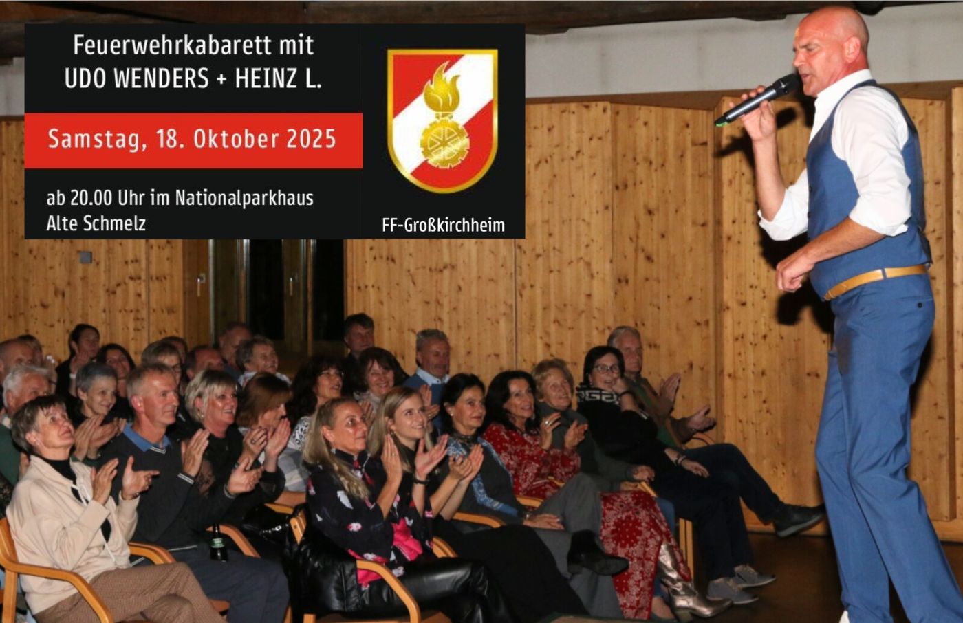 Wenn diesen Samstag die Freiwillige Feuerwehr Grosskirchheim zum zweiten Mal zum „Feuerwehr-Kabarett“ lädt, bleibt bestimmt kein Auge trocken. Die Kameraden bringen diesmal den aus „Narrisch guat“ bekannten „Mann der 100 Stimmen“ Heinz Lagler auf die Bühne, niemanden mehr vorstellen braucht man den Sänger, Kabarettist, Entertainer und Charmebolzen Udo Wenders. Das Programm rund machet ein weiterer Faschings-Quotenhit: „Die Tschentsche mit seiner Henriette“.