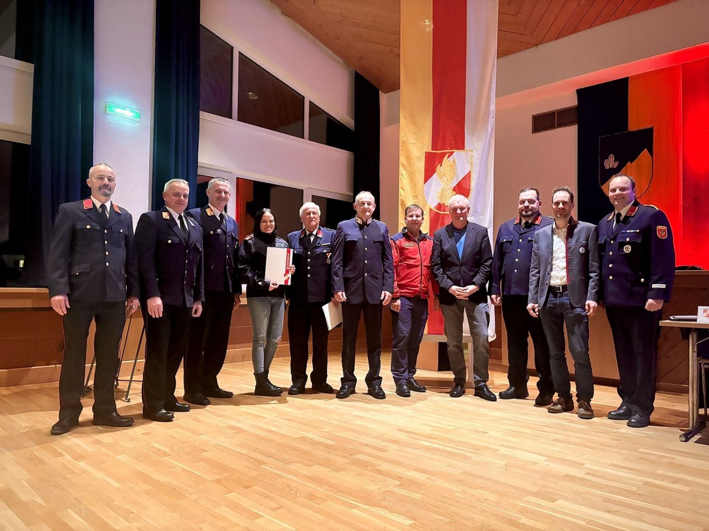 24 Einsätze, 13 Übungen mit insgesamt 5.595 Aufwandsstunden in 81 Tätigkeiten wurden von den Mallnitzer Florianijüngern gemeistert. Besonders hervorzuheben ist, die herausragende Leistung von 13 Kameraden, die an allen Übungen teilgenommen haben und hierfür mit einem kleinen Geschenk geehrt wurden. Alissa Lerchbaumer (Im Bild 4. v. l.) wurde zum Hauptfeuerwehrmann (bzw. „Hauptfeuerwehrfrau“) befördert. Betont wurde der starke Zusammenhalt. Ein fordernder Einsatz zum Jahresende war der Waldbrand im Ankogelgebiet, der – als positiver Nebeneffekt – jedoch nur den Teamgeist und die Zusammenarbeit unter den Organisationen stärkte. Eine „Nachbesprechung“ gab es schließlich noch in „Schaumis Bar“.