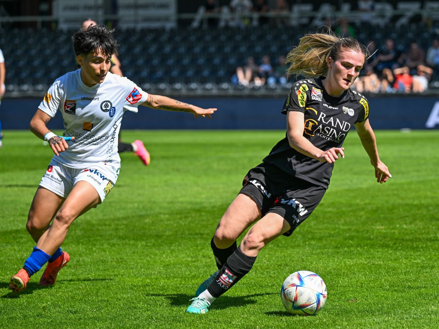 Julia Kofler (r.) läuft die vierte Saison für den SCR Altach in der Frauen Bundesliga auf. GEPA pictures/Oliver Lerch