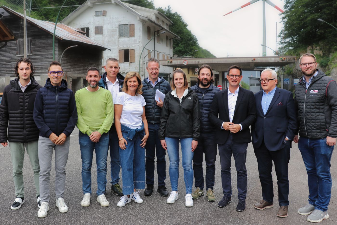 V. l.: Christian Rugo, Stefano Mazzolini (Vize-Präsident FJV), Claudio Coradazzi (Vertreter der Carnia-Gemeinden), Ingo Ortner, Elisabeth Dieringer, Nicola Cescutti (Arbeitgeberverband „Confindustria FVG“), Victoria Gailer, Bgm. Luca Scrignaro, Bgm. LA Ronny Rull, Enzo Unfer, Marc Germeshausen. Foto: Ingo Ortner