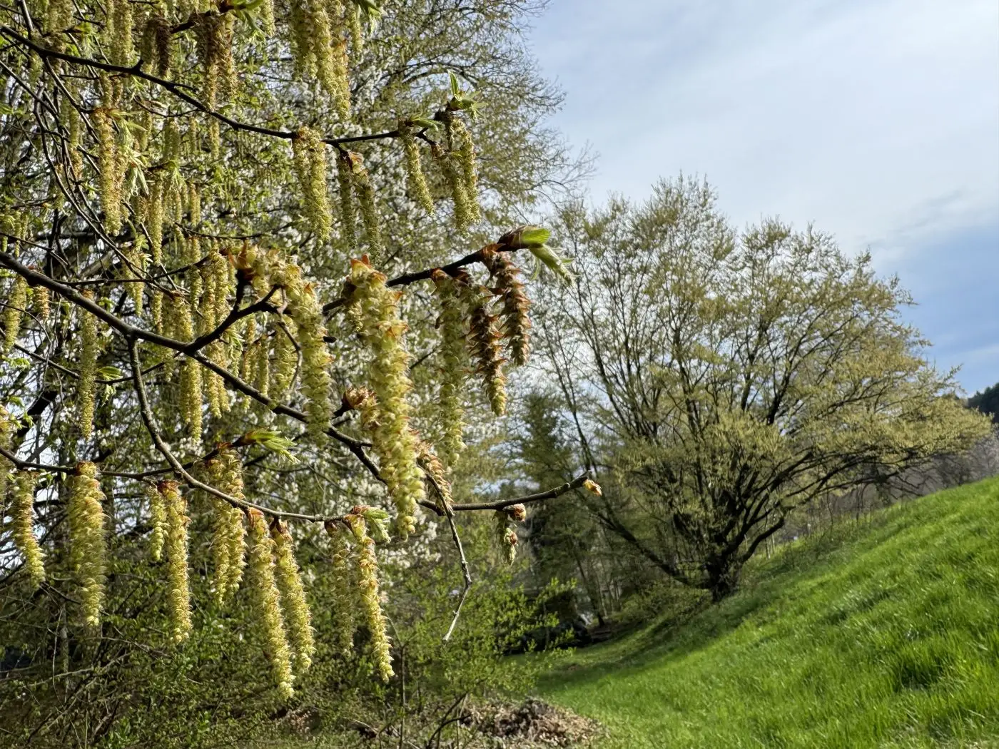Bäume neigen in Mehrjahresabständen zu extremen Blütenjahren, allerdings waren es vor Jahrzehnten noch vieljährige Abstände. Seit 2018 ist bei einigen Strauch- und Baumarten nahezu jährlich ein Massenblühen zu beobachten. Pollenallergiker können das leidvoll bestätigen. Heuer sind die Massenblüten der Hasel schon abgeblüht, ebenso die Zitterpappeln. Die Hainbuchen blühen derzeit maximal – mit bis zu einer halben Million Einzelblüten je Baum, die Erlen, Ulmen und Ahorne beginnen gerade vielerorts zahlreiche Blütenknospen zu öffnen. Auffällig blühen in Parken die Magnolien, in Gärten die Kirschbäume, in Wäldern die ansonsten kränklichen Eschen. Auch manche Rotbuchen zeigen viele Blütenknospen, ein Teil der Lärchen bildet bereits neue grüne Zapfen, obwohl sie noch voller Altzapfen aus dem Jahr 2023 sind.