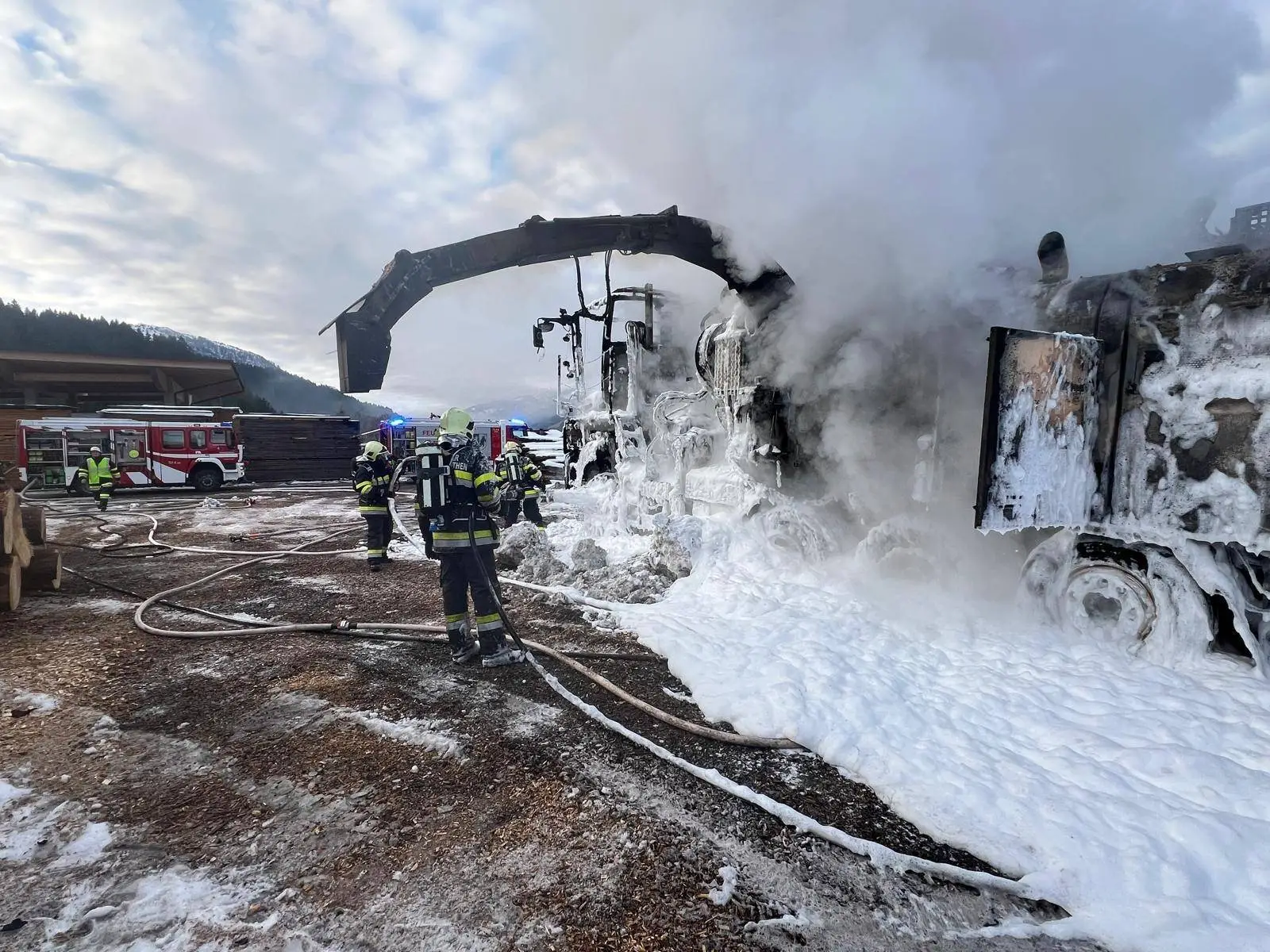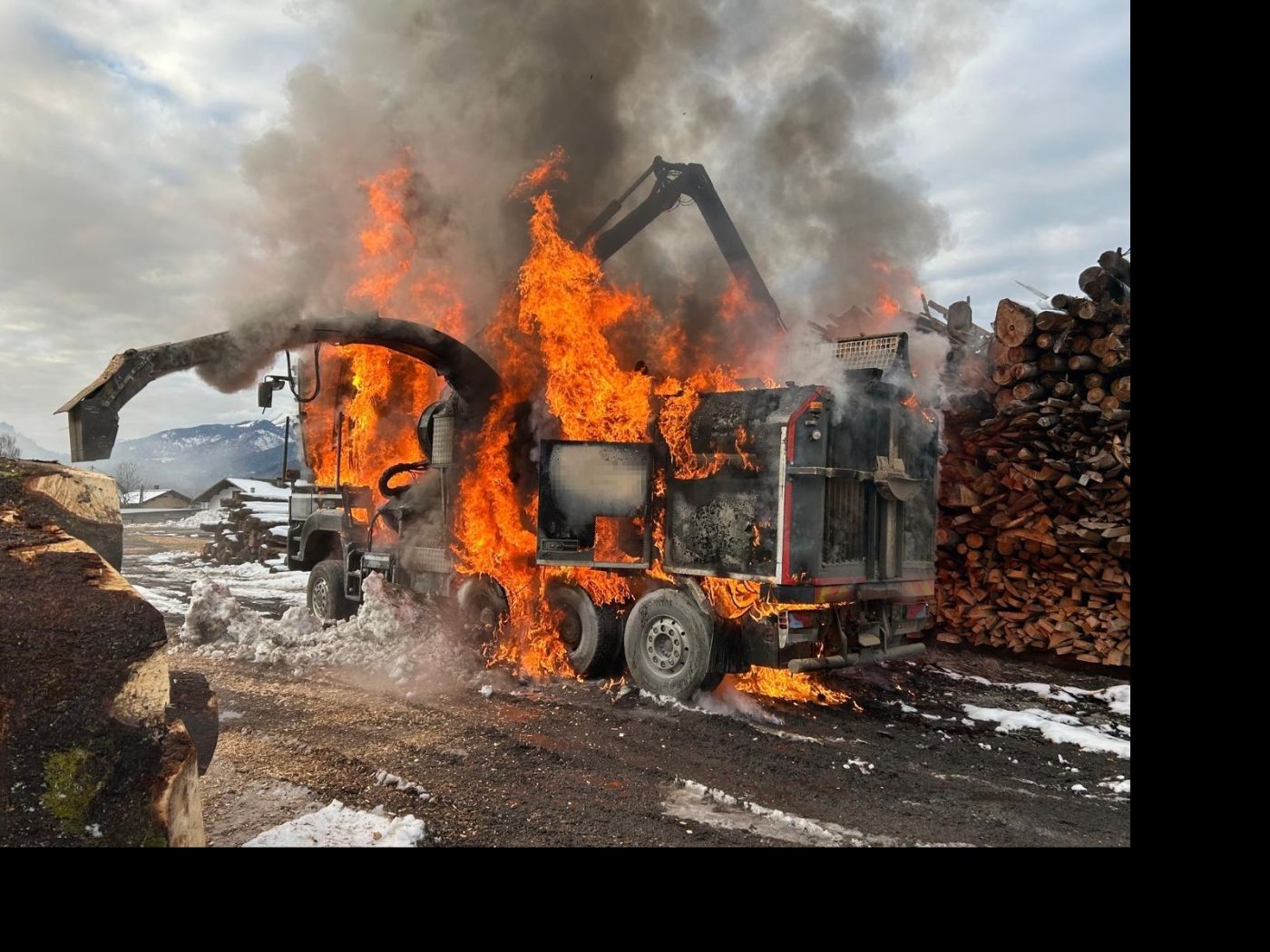 In Würmlach in der Marktgemeinde Kötschach-Mauthen, Bezirk Hermagor, geriet am Nachmittag des 2. Dezember 2025 ein Holzhäcksler-LKW auf dem Gelände eines Sägewerkes in Vollbrand.