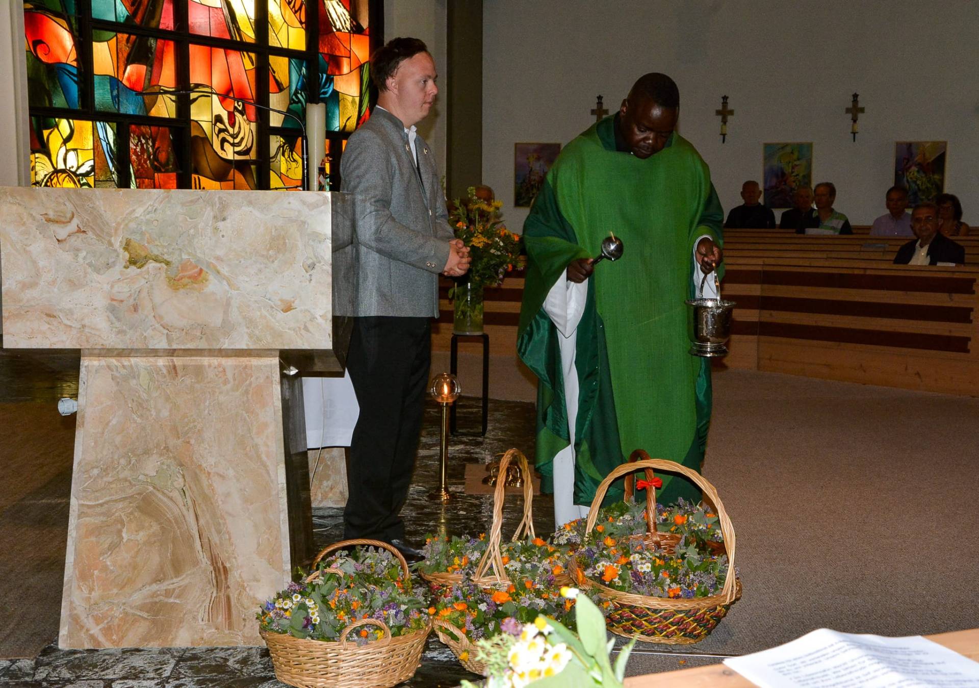 Am Vortag der Kräutermesse wurden die gesammelten Garten- und Heilkräuter von den Damen der Trachtengruppe unter Leitung von Obfrau Gabriela Kofler in geselliger Runde, zu duftenden Kräutersträußchen gebunden. Als Vorbereitung auf die heurige Kräuterweihe gab es im Juni sogar eine Exkursion nach Irschen mit Workshop „Kräuterkranzl binden“ im Kräuterstadl. Der erst kürzlich aus Uganda zurückgekehrte Pfarrer Arthur Kaweesa zelebrierte den Festgottesdienst und nahm die Segnung der Kräuter vor. Musikalisch umrahmt wurde die Feier vom MGV Mallnitz unter der Leitung von Georg Brucker. Im Anschluss an die Messe wurden die gesegneten Kräutersträußchen am Kirchenvorplatz im Zuge einer Agape an Einheimische und Gäste verteilt.