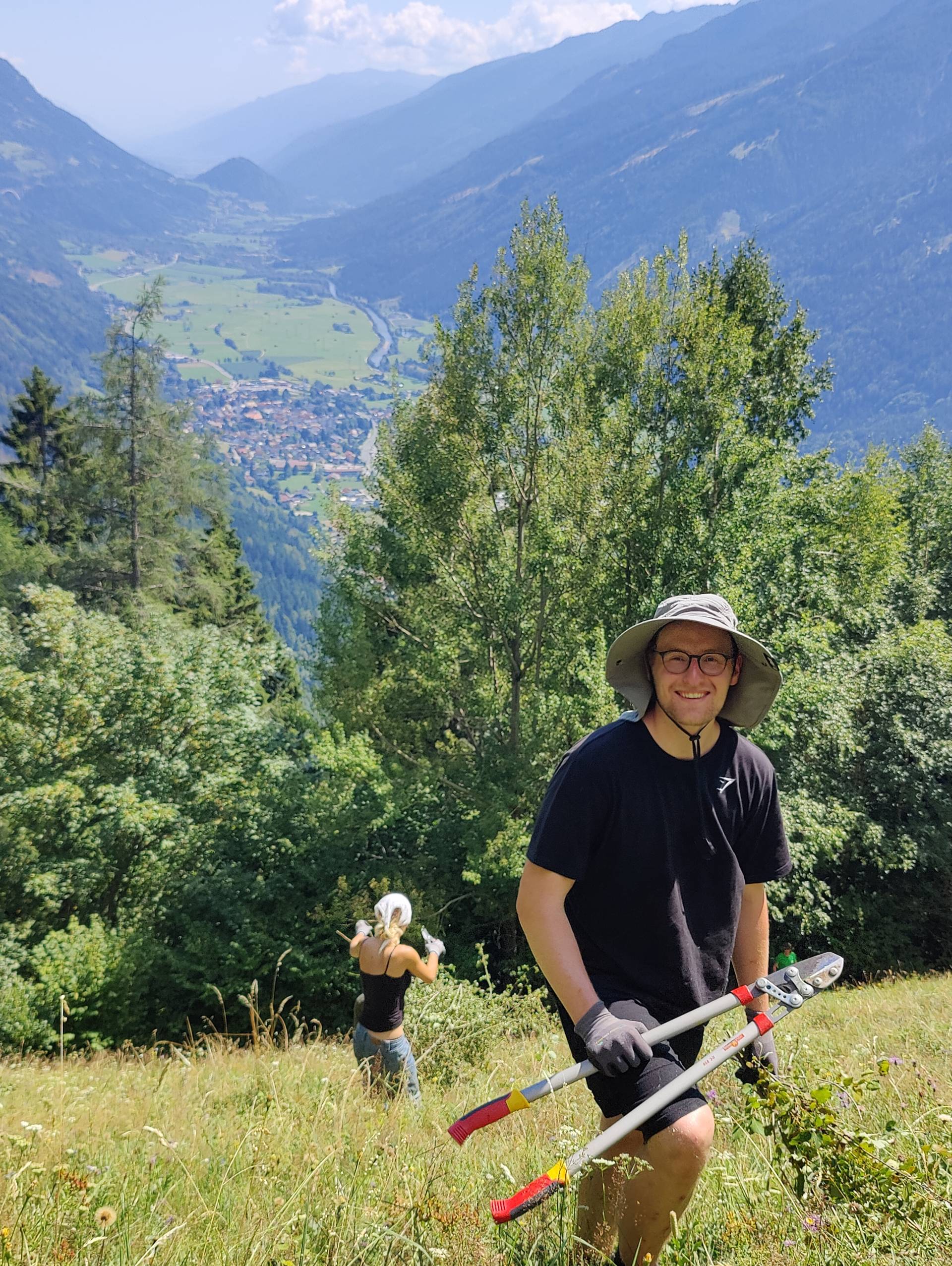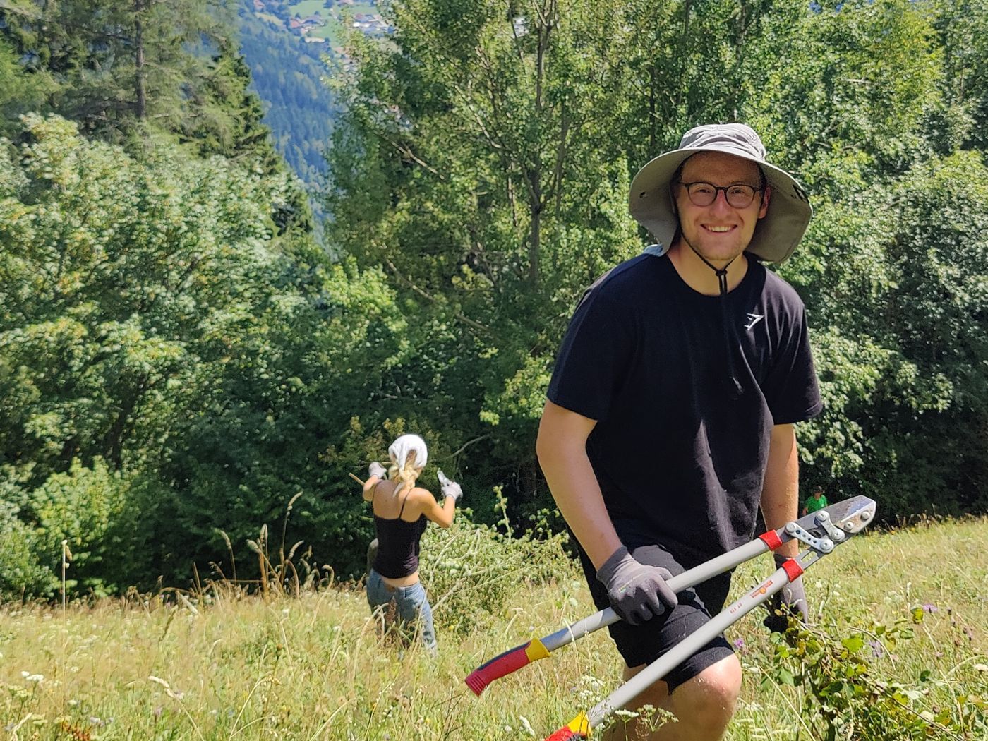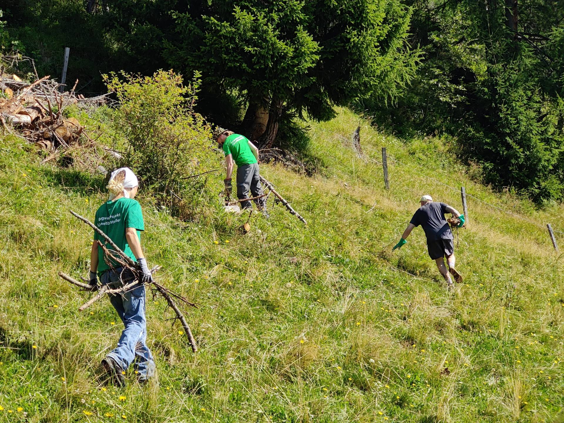 Was früher selbstverständlicher Bestandteil der Almwirtschaft war, wird heute oft vernachlässigt: die aufwendige Pflege von Bergwiesen. Dabei sind sie nicht nur ein landschaftliches Juwel, sondern auch ein Hotspot der Biodiversität. Die jungen Freiwilligen halfen bei der Mahd und Entbuschung, reparierten Zäune, sicherten Wege und entfernten invasive Pflanzen, die heimische Arten verdrängen.
