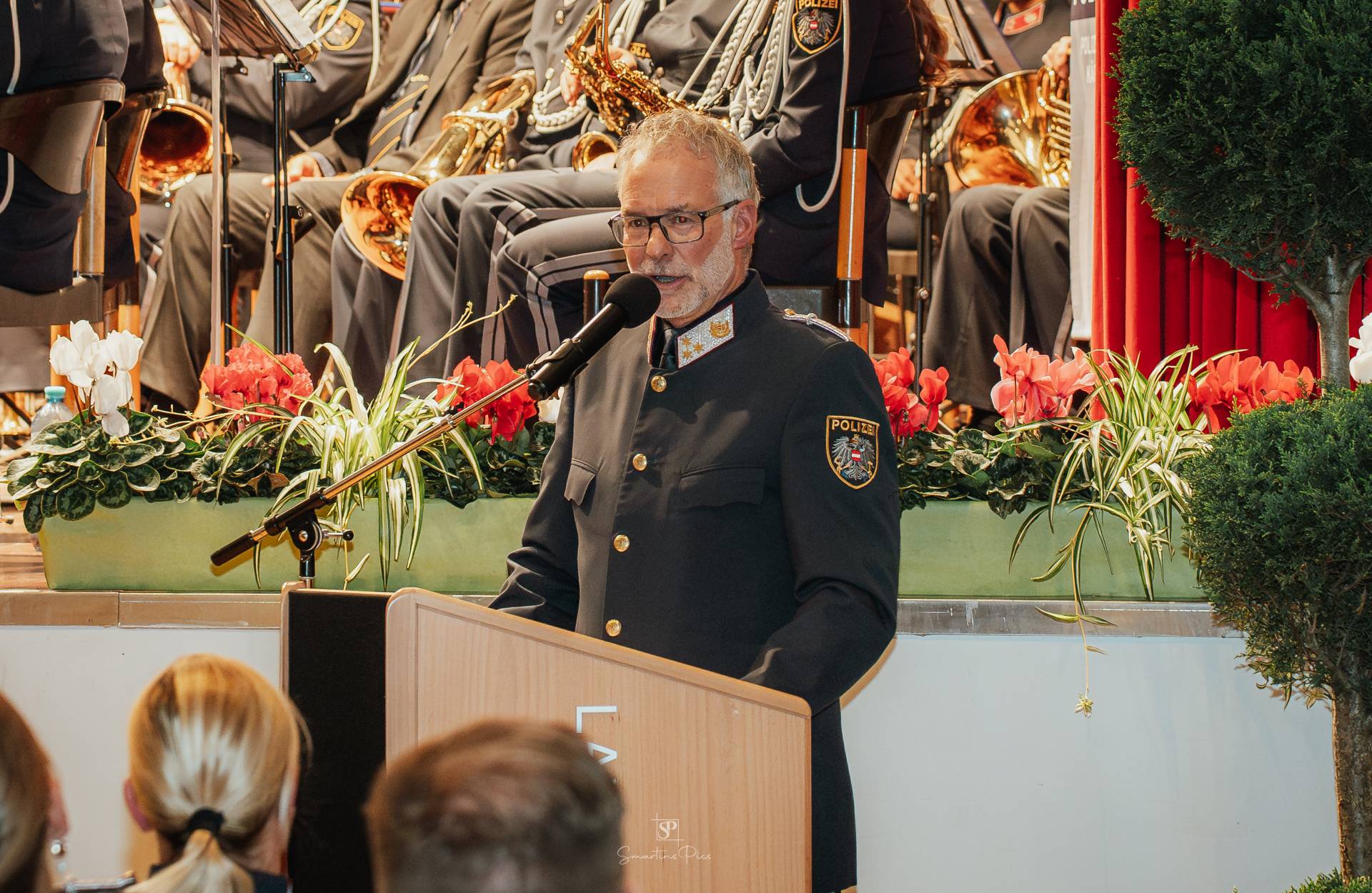 Unter dem Motto „Shall We Travel?“ gaben die Beamtinnen und Beamten der Polizeimusik Kärtnen ein abwechslungsreiches Bezirkskonzert im Spittaler Stadtsaal. Ein Konzert „besonderer Güte“, freute sich Gastgeber und Inspektionskommandant Johann Ramsbacher. Zahlreiche Gäste – uniformiert und auch ohne Uniform – waren gekommen. Darunter Landespolizei-Chefin Dr. Michaela Kohlweiß und ihre Stellvertreter Generalmajor Arthur Lamprecht und Dr. Rainer Dionisio. Von Seiten des Bezirkes gab sich BH Markus Lerch die Ehre, genauso wie Bgm. Gerhard Köfer von Seiten der Stadtgemeinde. Weitere prominente Gäste waren: die neue 3. Landtagspräsidentin Bgm. Marika Lagger-Pöllinger, die Bürgermeister Friedrich Paulitsch (Lendorf), Thomas Schäfauer (Seeboden), Michael Maier (Radenthein). Mit Polizeiseelsorger DDr. Stromberger und dem Spittaler Stadtpfarrer Dechant Ernst Windbichler war auch die Geistlichkeit gut vertreten. Für die Bewirtung sorgte die Lebenshilfe Spittal mit ihren tüchtigen Klienten unter der bewährten Leitung von Elisabeth Lerch.