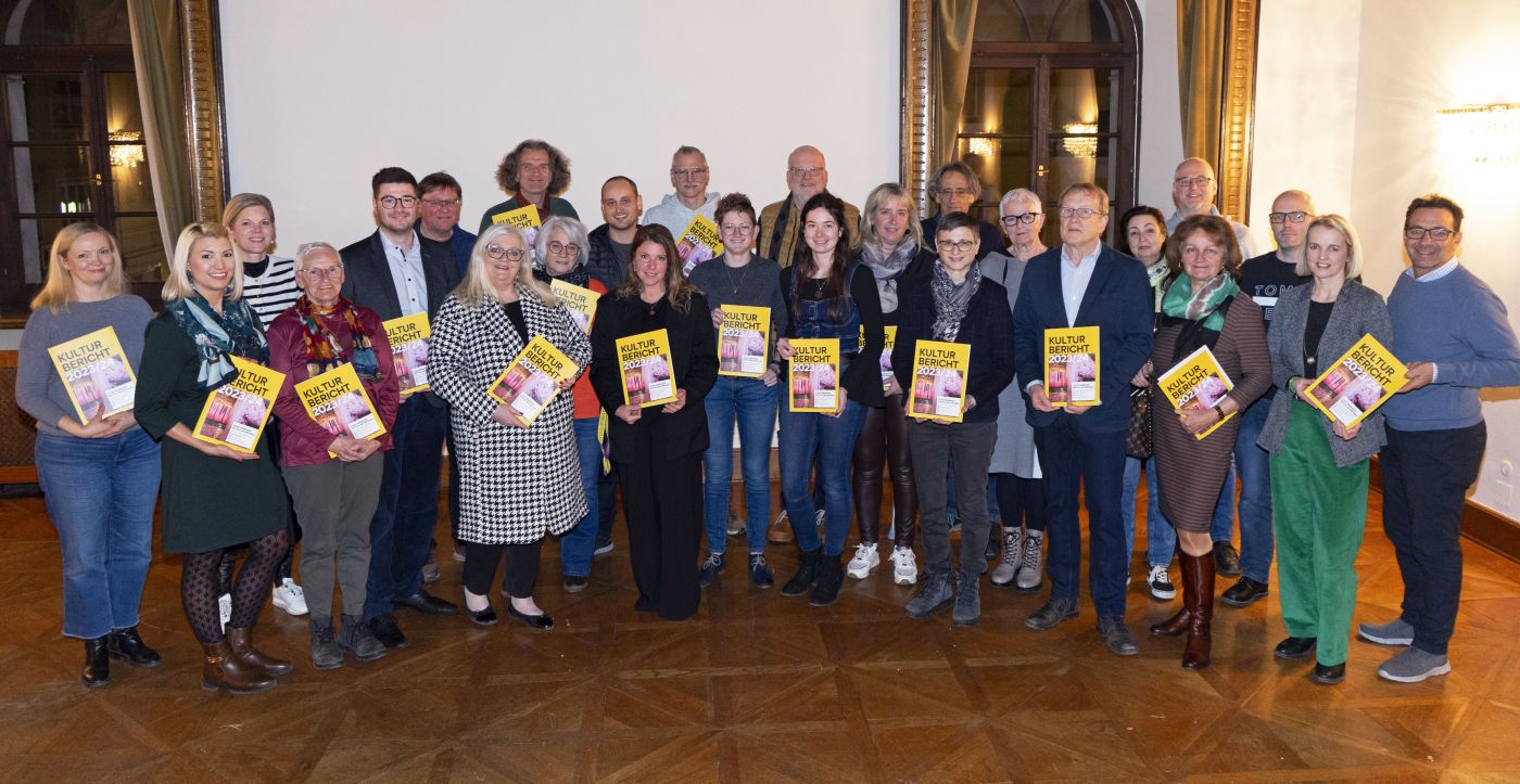 Vertreter der Stadtgemeinde und er Spittaler Kulturinitiativen mit dem 12. Kulturbericht in Papierform. Foto: Stadtgemeinde Spittal/Eggspress