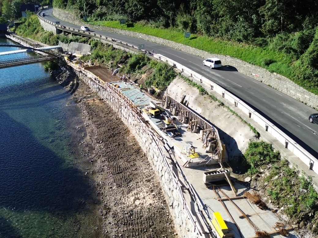 In den vergangenen Monaten wurden bereits 300 Meter Kragplatten auf der Bestandsufermauer und 160 Meter Betonplatten auf der neuen Steinschlichtung bzw. Böschung errichtet. Bis Ende November werden weitere 200 Meter Kragplatten dazu kommen. Ende November sollen die Arbeiten an den Stahlbetonkragplatten im Bereich der Ortseinfahrt von Spittal bis zur Ertlwand abgeschlossen sein. Ab 1. Dezember bis zur nächsten geplanten Totalsperre Anfang Februar 2026 wird die B99 durch die Lieserschlucht von Spittal aus Richtung Seeboden mittels Einbahnregelung einseitig für den Verkehr freigegeben sein. Die Fahrtrichtung Spittal wird wieder über die L10 Trebesinger Straße über den Fratres geführt. „Wir haben bei dem Bauzeitplan größtmögliche Rücksicht auf die Bedürfnisse der Region genommen“, äußerte sich der zuständige Straßenbaureferent LH-Stv. Martin Gruber. Der Lieserschlucht-Radweg sei eines der größten Radweg-Projekte des Landes – ein „Vorzeigeprojekt“.