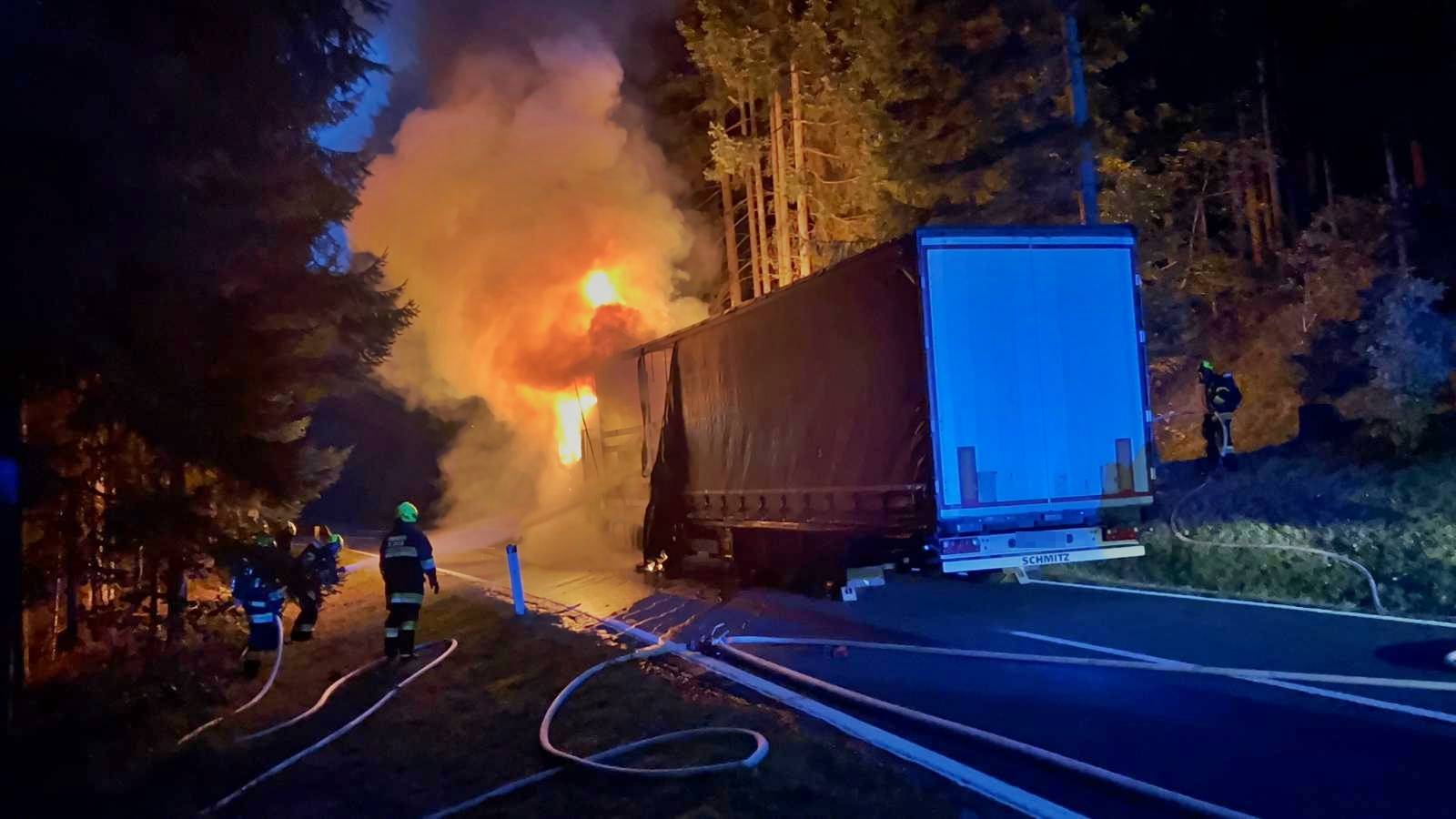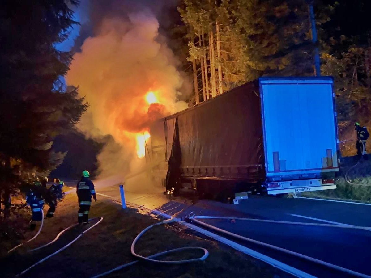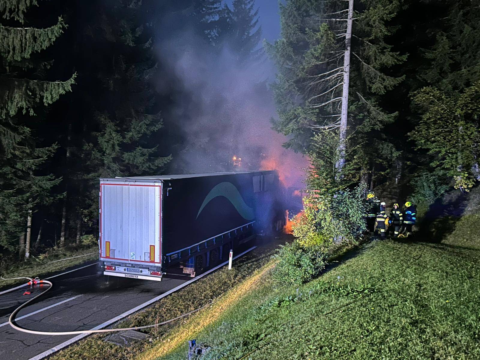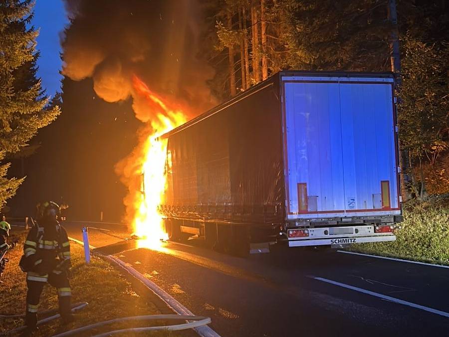 Der Bulgare fuhr mit seinem Sattelfahrzeug auf der Kreuzner Landesstraße in Richtung Norden. Im Bereich Matschiedl fing die Zugmaschine aus bislang unbekannter Ursache Feuer. Zeugen gaben später an, dass schon während der Fahrt Flüssigkeit auf die Fahrbahn floss die sich dort bereits entzündete, berichtet die Polizei St. Stefan. Die bereits brennende Flüssigkeit setzte dann die Fahrerkabine in Vollbrand. Der 73-Jährige konnte den LKW zum Stillstand bringen und unverletzt aussteigen. Kurze Zeit später griffen die Flammen auf den Anhänger über der mit Folienrollen beladen war.