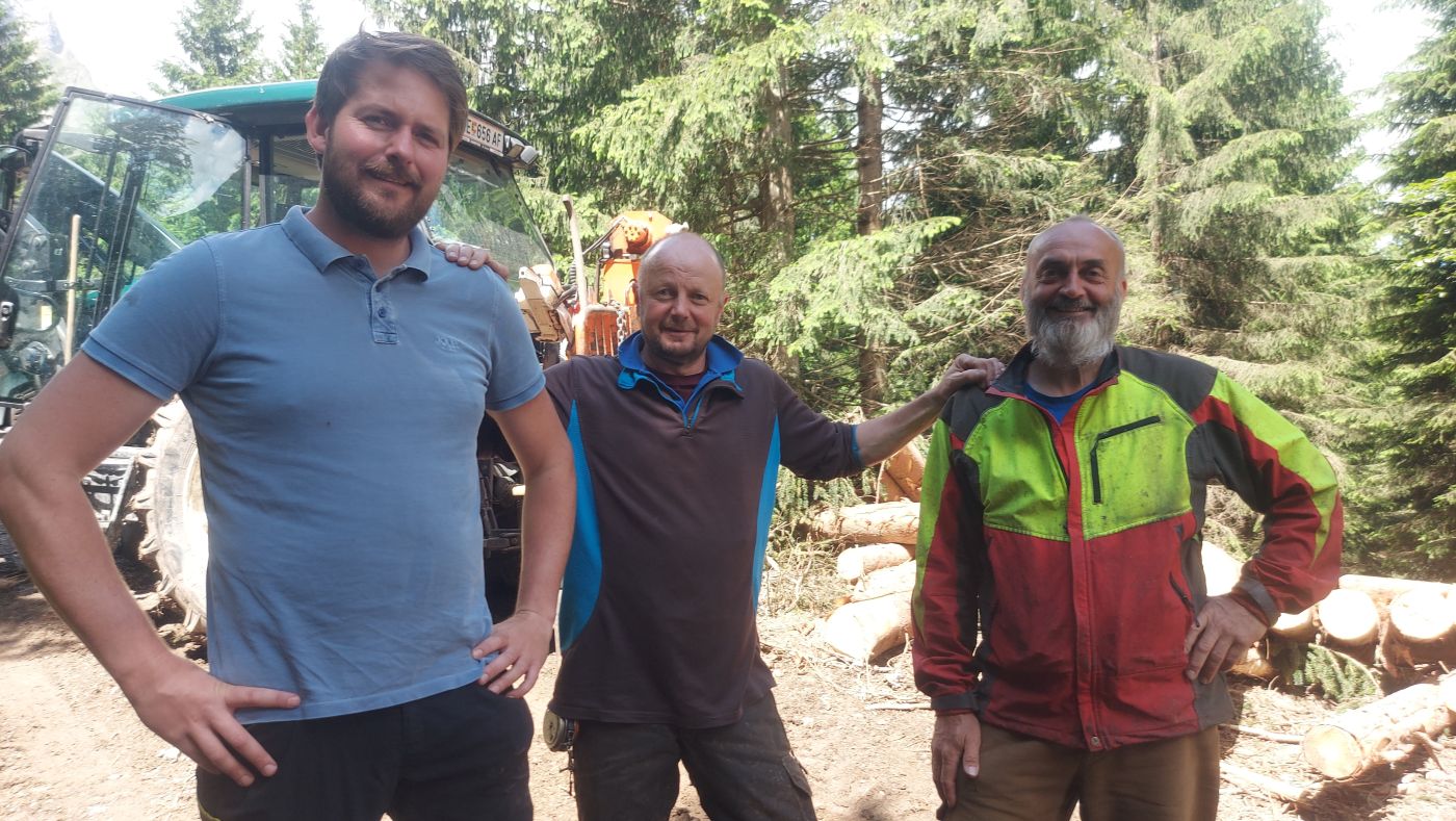 Hunderte Hektar Waldbesitz und daran anschließend bzw. umschlossen auch ein sehr großes und schönes Almgebiet, alles im Plöckengebiet (Gemeinde Kötschach-Mauthen), gehören seit mehreren Generationen der Familie Gressel. Martin Hohenwarter (in der Mitte des Fotos) arbeitet bereits seit über 30 Jahren dort, seit einigen Jahren ist Raphael Gressel sein Arbeitgeber, sein Chef, zuvor waren es dessen Vater Carl und Großvater Fritz, bei denen Martin bereits gearbeitet hat. Übrigens: Raphael ist auch Bezirksjägermeister. Raphaels Urgroßvater war Oberst Carl Gressel, der sich im 1. Weltkrieg für die Karnische Region und auch später große Verdienste erworben hat und auch viele Jahre Bürgermeister von Mauthen war. Hohenwarter schätzt seinen Arbeitsplatz in freier Natur sehr, ebenso sein Arbeitsverhältnis mit Austausch im Gespräch und gegenseitiger Wertschätzung. Sein Aufgabengebiet ist weitgespannt, denn Ziel ist es, die Wälder gesund zu erhalten und nachhaltig zu pflegen. Martin schlägert Bäume, entastet sie und schneidet sie auf die gewünschte Länge zu. Er kümmert sich um die Wege, damit sie benützbar bleiben; vom Unwetter beschädigte Wege werden wieder hergerichtet. Er transportiert Holz mit dem modernen Traktor, baut Seilwinden auf, lagert das Holz so, dass LKWs zufahren und abholen können. Kranke Bäume werden entfernt, junge Bäume sollen gut aufkommen und gedeihen, werden von anderen Pflanzen befreit. Er wartet und repariert Maschinen und Werkzeuge, kann auch schweißen u.v.m. Seine tägliche Baustelle ist der Wald, wo er mit großem Einsatz und auch gerne tätig ist.