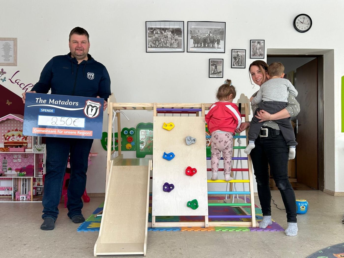 Unter der Leitung von Obmann Martin Pall und seinem Stv. Martin Pacher unterstützt der Verein jährlich eine soziale Einrichtung oder ein besonderes Projekt mit dem Überschuss aus seinen Veranstaltungen. In diesem Jahr fiel die Wahl auf die Kinderspielgruppe Dorfspatzen. Die Matadors stellten eine Unterstützung in der Höhe von 250 Euro für eine gesunde Jause zur Verfügung. Zusätzlich wurde ein Indoor- Klettergerüst angeschafft, das den Kindern im Alltag zusätzliche Bewegungs- und Spielmöglichkeiten eröffnet.
