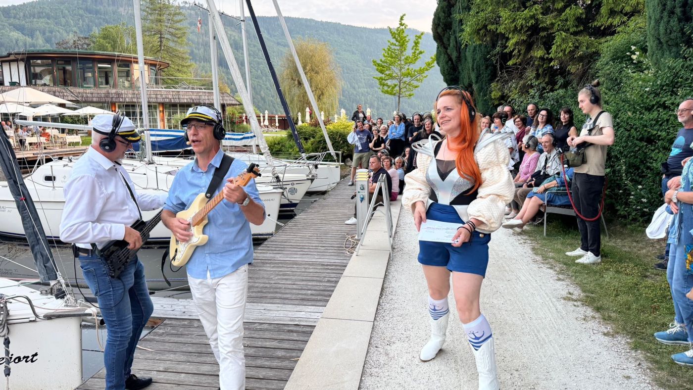 Mit Kopfhörern durch die Gassen von Döbriach, lautes Sommerabend-Wetter, der Mond scheint. Und auf der Straße eine Gruppe Nachtschwärmer, bewaffnet mit Kopfhörern, lauschend der Stimme von Mona Mond, Monika Peitler, die über amouröse Abenteuer erzählt. Man munkelt, dass sie beim nächsten „Mondsüchtig“ sogar Flirttipps ausgeben will... Für die richtigen Töne sorgen die beiden Musiker Michael Samitz und Hans Kofler.
