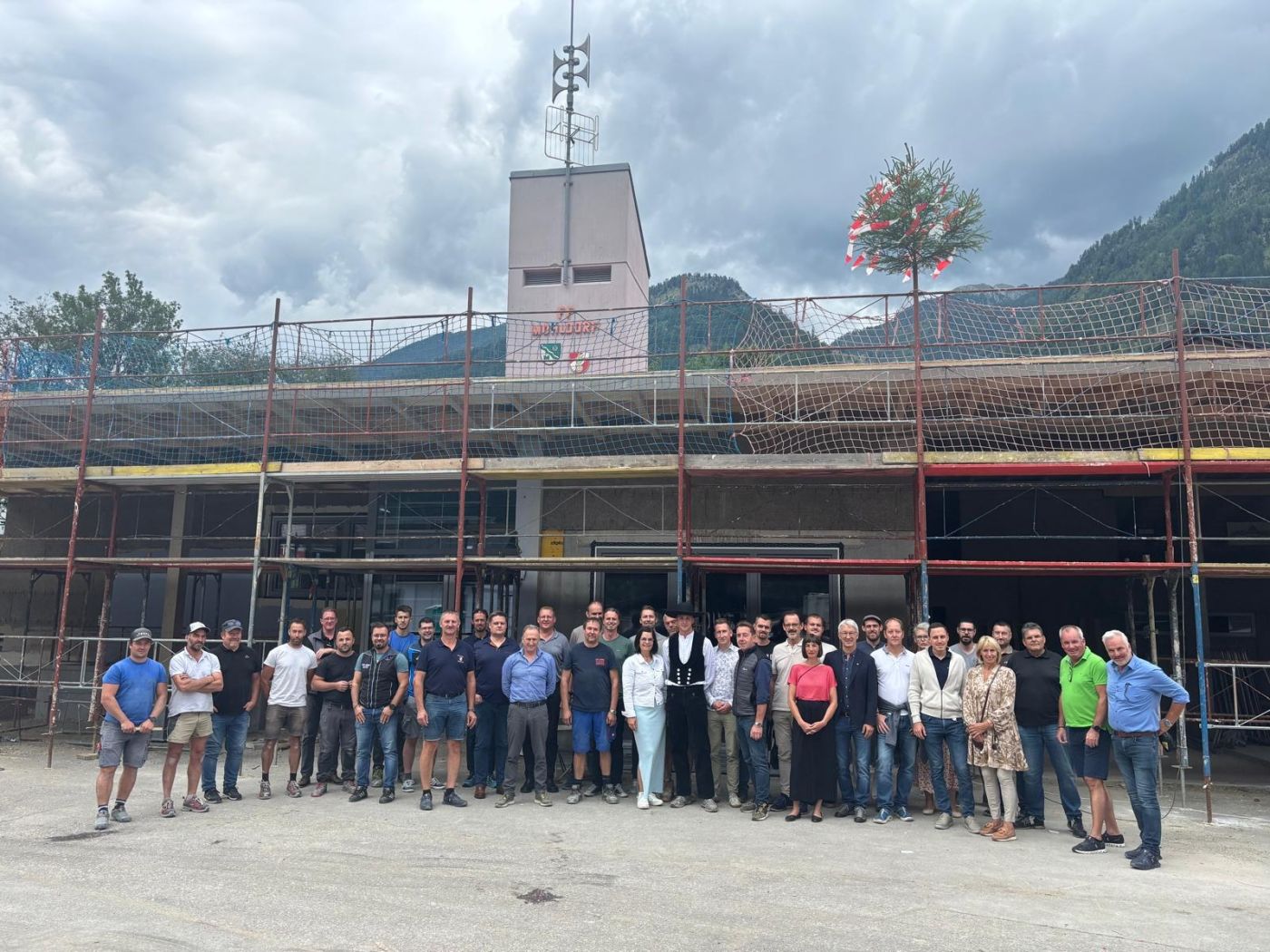 Die Modernisierung und Erweiterung des Gebäudes sollen die Einsatzbereitschaft der Freiwilligen Feuerwehr langfristig sichern und den gestiegenen Anforderungen im Einsatzdienst gerecht werden, verlautbarte die Gemeinde Mühldorf anlässlich der Gleichenfeier am neuen, bzw. am grundlegend umgebauten Rüsthaus der FF Mühldorf gleich neben der Mölltalstraße. Rund 1,6 Mio Euro werden in den Umbau investiert. Neben baulichen Verbesserungen werden auch technische Modernisierungen und Erweiterungen der Sozial- und Umkleideräume – vor allem auch für Frauen und Jugendliche – und die Erweiterung der Fahrzeugstell- und Lagerflächen umgesetzt. Bgm. Erwin Angerer betonte die Bedeutung des Projekts: „Unsere Feuerwehr ist ein zentraler Pfeiler für Sicherheit und Gemeinschaft. Der Umbau ist ein wichtiges Zeichen der Wertschätzung und Notwendigkeit – für die Frauen und Männer, die rund um die Uhr für uns bereitstehen.“ Mit dem Abschluss der Bauarbeiten im Herbst erhält die Feuerwehr eine moderne und zukunftssichere Infrastruktur.