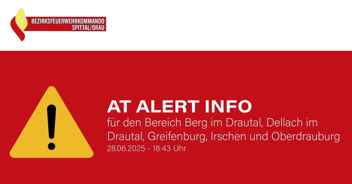 In Folge eines Großbrandereignisses in Nussdorf-Debant (Osttirol) am Samstagabend, wurde seitens der Behörden vorsorglich ein AT-Alert für Berg im Drautal, Dellach im Drautal, Greifenburg, Irschen und Oberdrauburg ausgelöst. Aktuell kann es in Oberkärnten zu wahrnehmbaren Geruchsbelästigungen kommen. Es besteht keine Gesundheitsgefährdung für die Bevölkerung in Oberkärnten, lies Feuerwehrreferent und Katastrophenschutzreferent Daniel Fellner über den Landespressedienst ausrichten. Das Land Kärnten stehe mit den zuständigen Behörden und Einsatzkräften in engem Kontakt und beobachte die Lage laufend.Weitere Informationen unter: AT-Alert | Land Tirol