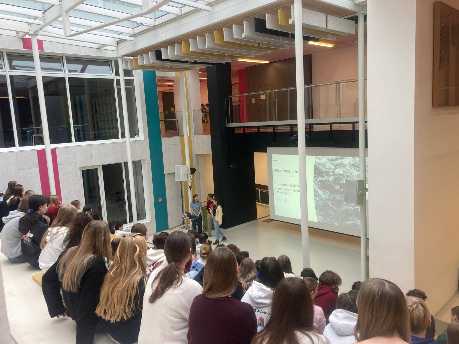 Rund zehn Klassen, Lehrpersonal, Presse, Vertreter der Klima- und Energiemodellregion „Millstätter See“ und des Klimabündnisses Kärnten erlebten Anfang Jänner wie engagiert junge Menschen Klimaschutz in die Öffentlichkeit tragen. 19 Jugendliche aus den 7. und 8. Schulstufen des BG/BRG meldeten sich freiwillig für das Projekt und arbeiteten in fünf Kleingruppen in Redaktion, Moderation, Recherche, Technik und Schnitt sowie Postproduktion an der Podcast-Folge. Die Texte zum Podcast, alle Plakate und Social Media Posts, die grafische Gestaltung des Titelbildes sowie eines Spendenaufrufs für den Verein „Mission Erde“, die Moderation innerhalb der Podcast-Folge, die Aufnahmen und die Interviews mit den Experten wurde von den Schülern übernommen. Die Ergebnisse präsentierten die Schüler selbst vor Gästen und Partnern, wie KEM-Manager Georg Oberzaucher oder Christian Salmhofer vom Klimabündnis Kärnten.