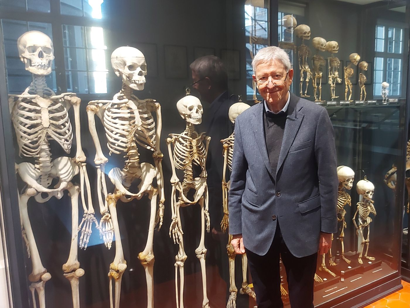 Begeistert erklärt er die Objekte der auch öffentlich vielbeachteten Schausammlung und weiß viel(e) Geschichte(n) dazu. Ob Kopf, Arm, Nervensystem, Rumpf, Verdauung – der ganze Mensch eben in seinen zahllosen „Einzelteilen“ wurde hier modellhaft und didaktisch eindrücklich aufbereitet – für Studenten und auch für interessierte Besucher (für sie gibt es montags freien Zugang).