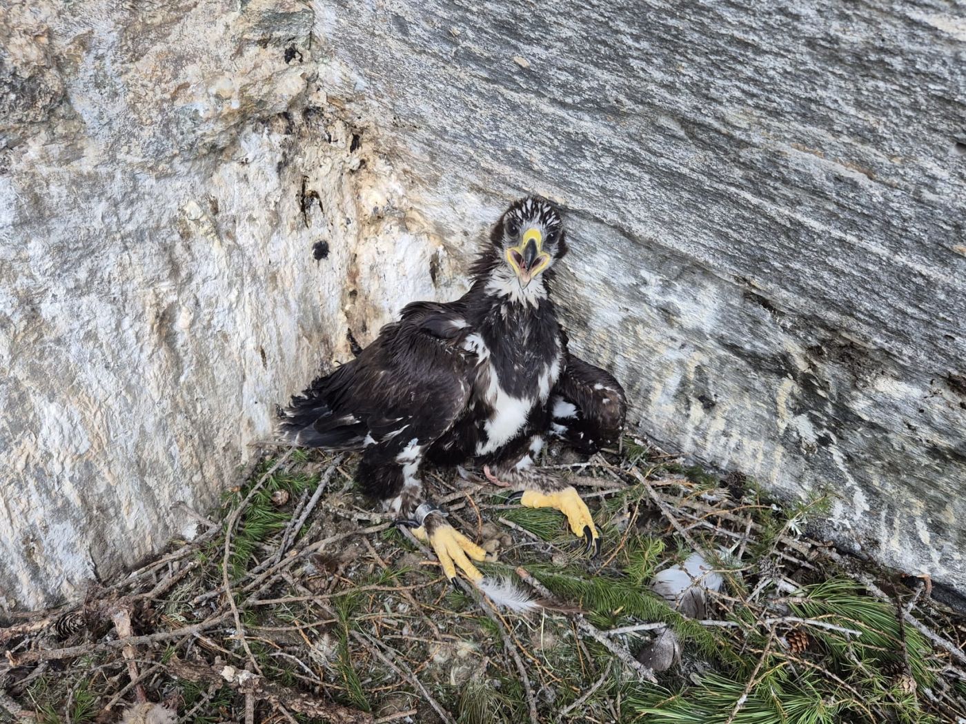 „Zirki 25“ ist ein „Adlermädchen“ – ein Jungvogel, der zum Zeitpunkt der Besenderung etwas 50 Tage alt war. Der GPS-Sender wurde ihr passgenau wie ein Sportklettergurt angelegt – eine bewährte Methode, die den Vögeln maximale Bewegungsfreiheit gewährt. Zusätzlich wurde der Jungvoel beringt, vermessen und es wurden genetische Proben entnommen. In rund 20 Tagen wird die junge Steinadlerin voraussichtlich ausfliegen und ihre ersten selbstständigen Flüge im Nationalpark unternehmen. Mit dem Sender ausgestattet, liefert sie künftig wertvolle Daten über ihre Flüge und Lebensweise.