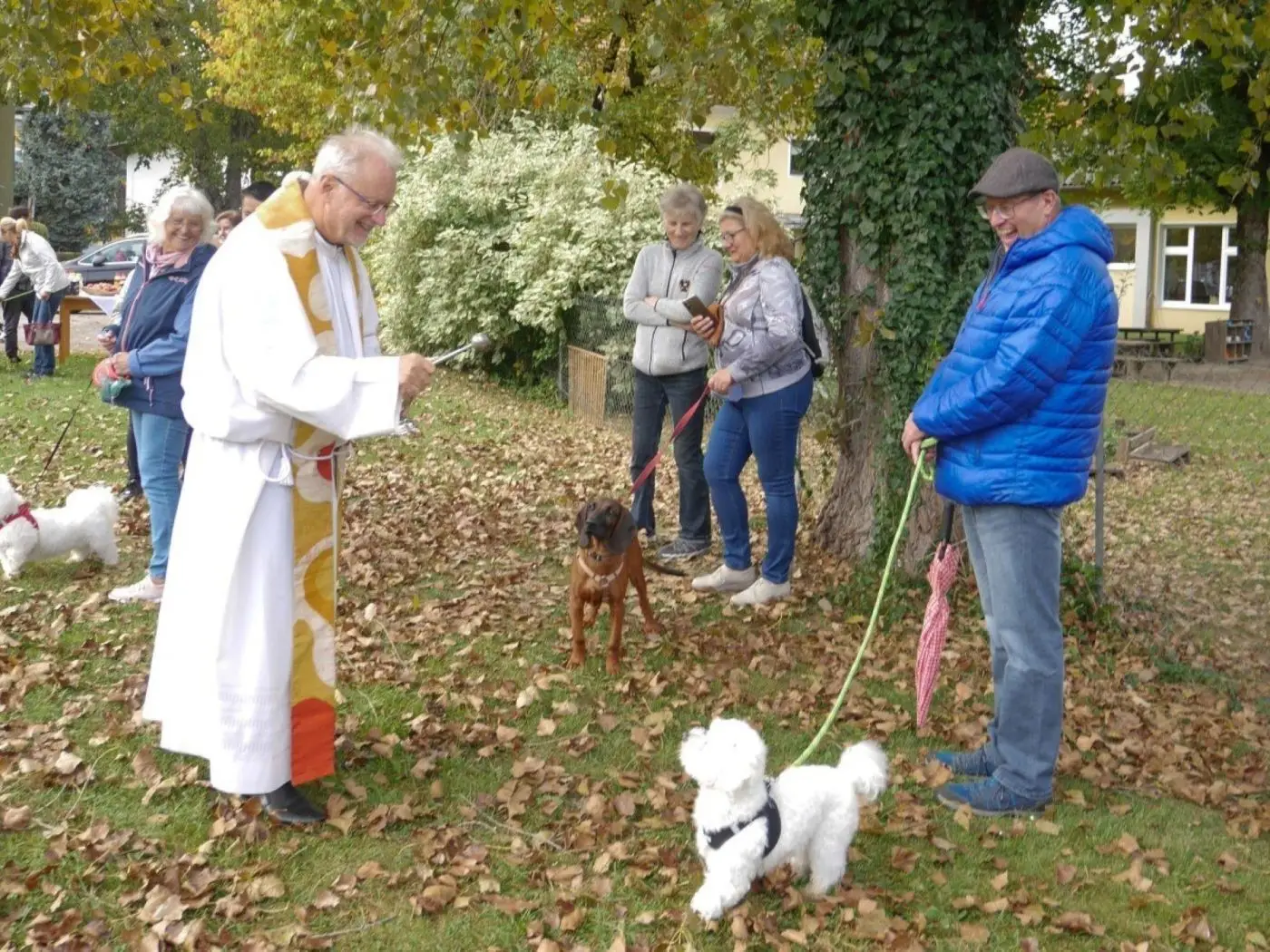 Rund um den Welttierschutztag am 4. Oktober finden in einigen Kärntner Pfarren Tiersegnungen statt. (im Bild: Tiersegnung mit Dechant Ernst Windbichler 2023 in der Pfarre Spittal an der Drau). Foto: Pfarre Spittal an der Drau/Stockhammer