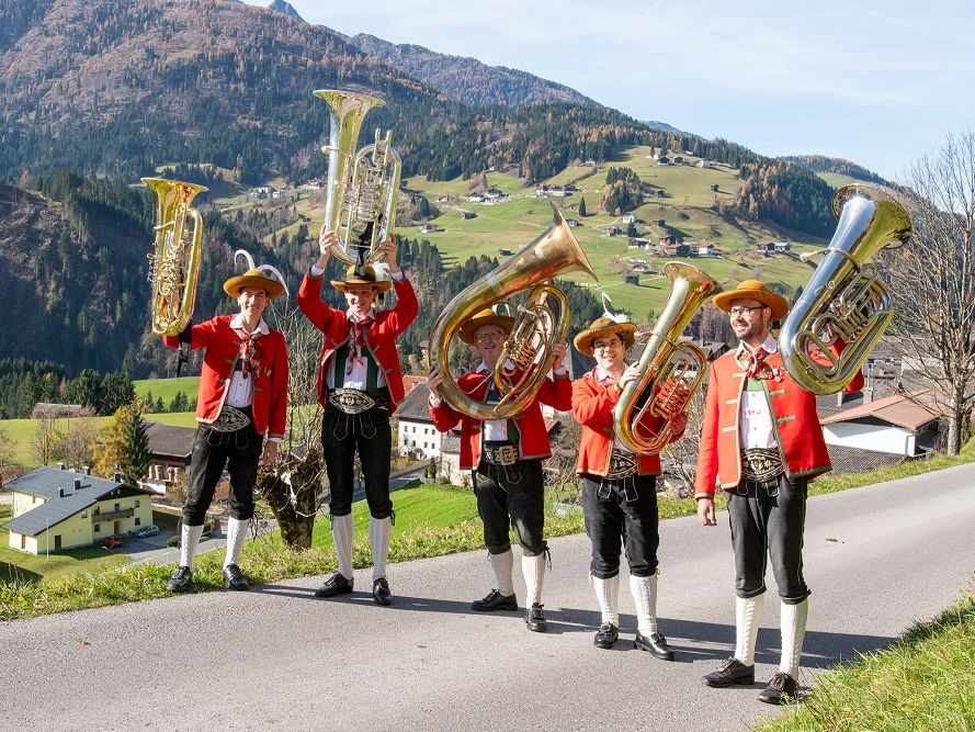 Die Tuba steht im Mittelpunkt der heurigen „Winternacht“. Tribut gezollt wird auch dem Helikon (Instrument in der Mitte), das sich bereits 100 Jahre im Besitz der TK Liesing befindet. Foto: TK Liesing/Hans Guggenberger