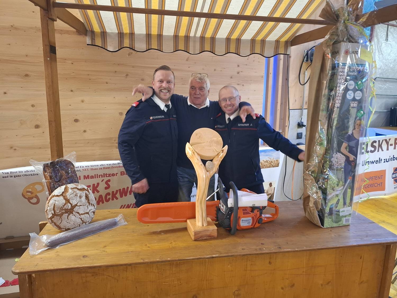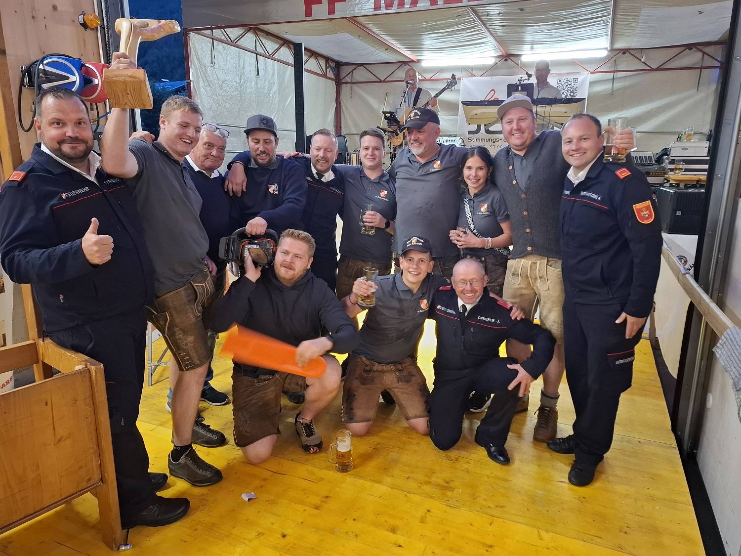 Der Hauptpreis - unter den vielen tollen anderen Preisen - war eine Kombination von Maibaum (gesponsert von den Österreichischen Bundesforsten – Arnold Knötig) und einer hochwertigen Motorkettensäge. Diesen Preis konnten in Personalunion Mitglieder der FF-Badgastein für sich beanspruchen. Für die perfekte musikalische Umrahmung sorgte das Duo „FEZZZ-JUHE“ aus dem Raum Spittal. Auch am nächsten Tag beim Zusammenräumen sorgten viele Hände für ein schnelles Ende