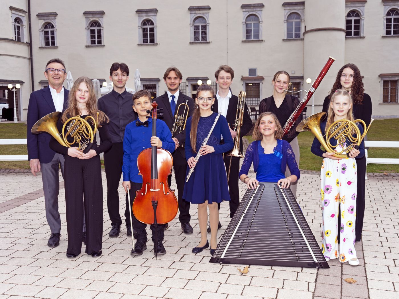 Von der Musikschule Spittal-Baldramsdorf waren gleich zehn Teilnehmerinnen und Teilnehmer in Wien angetreten. Im Bild mit Direktor Hans Brunner (li). Foto: Stadtgemeinde Spittal