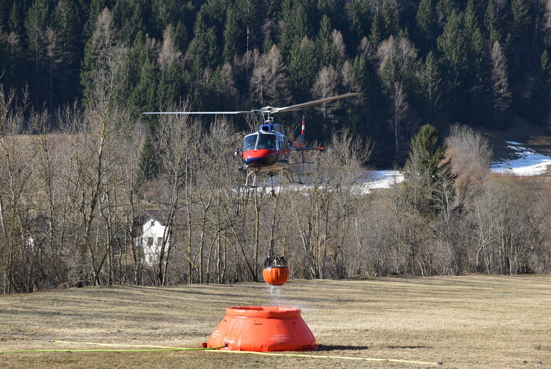 Durch eine Sturmböe wurde um 14:30 Uhr eine Stromleitung, die über einen Berghang zu einer Siedlung oberhalb der Ortschaft Namlach führt, umgerissen. Dadurch wurde die umliegende Waldfläche in Brand gesetzt. Bedingt durch den starken Wind hat sich das Feuer schnell ausgebreitet.