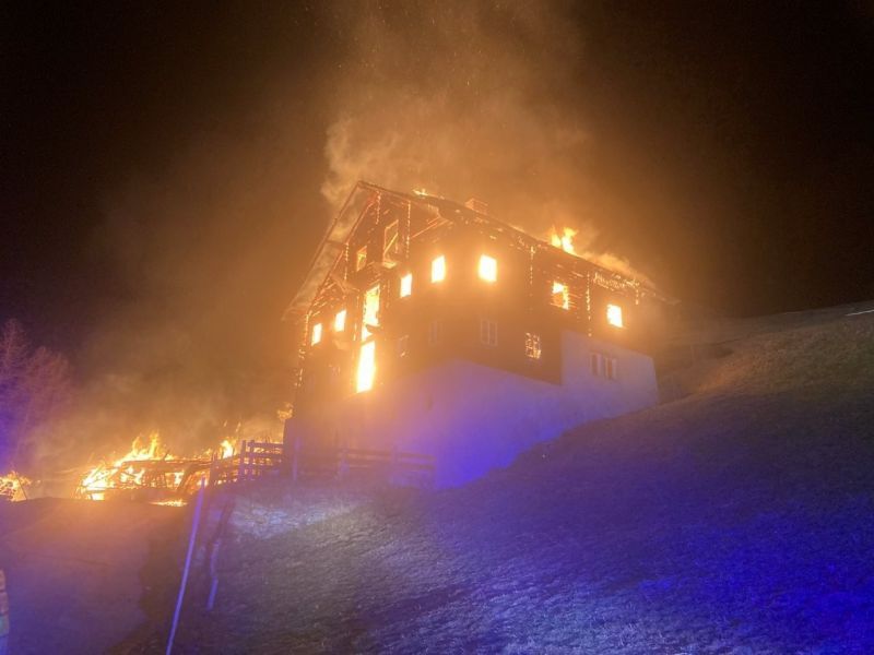 Heute Nacht, Dienstag, 24. März, kurz vor 2 Uhr, gerieten ein Wirtschaftsgebäude und ein daneben befindliches, unbewohntes Wohnhaus in der Gemeinde Heiligenblut am Großglockner aus bisher unbekannter Ursache in Brand.