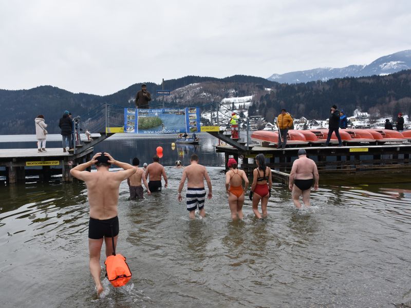 Ab ins eiskalte Wasser hieß es für rund 15 Wagemutige, die sich beim ersten Dreikönigsschwimmen in Seeboden getrauten.