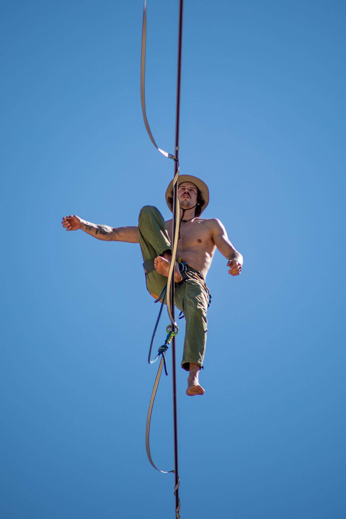 Auf 1017m langer Highline im Gebirge