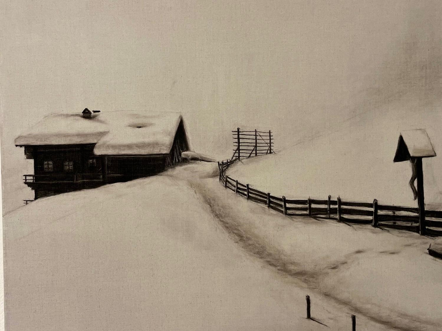 Erst auf den zweiten Blick erkennbar: Kein Foto, sondern Zeichnungen Kohle auf Rohleinen, Foto: Brugger
