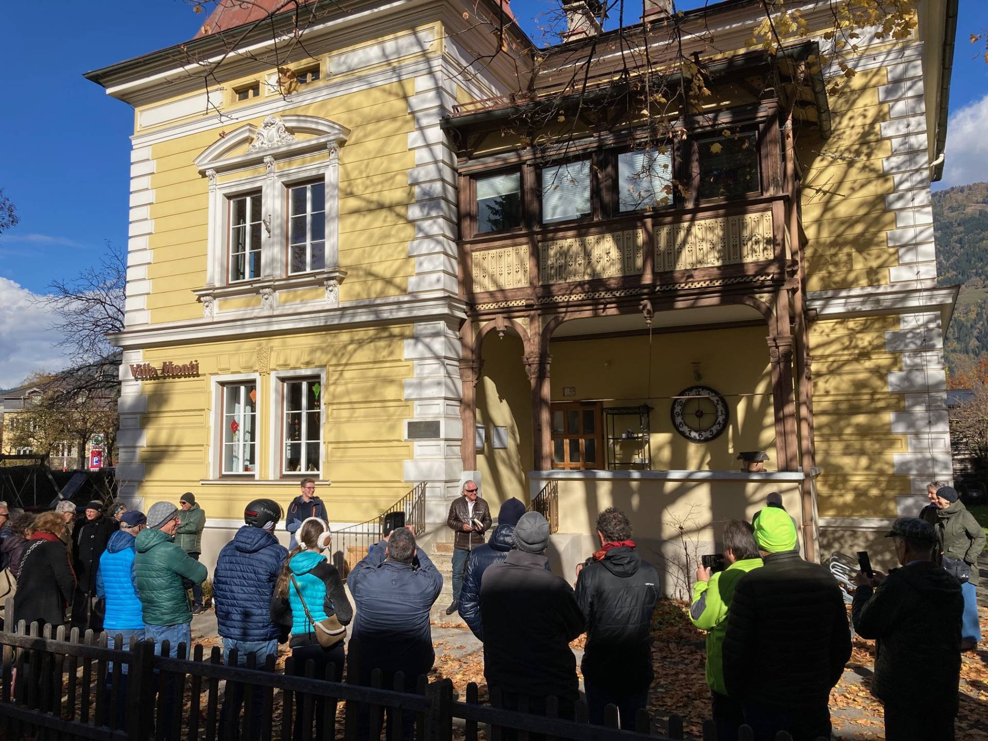 Gut zwei Dutzend Interessierte folgten diesem „Weg zur Freiheit“. Ausgangspunkt war der Draupark, wo sich während und kurz nach dem 2. Weltkrieg ein Zwangsarbeiter- bzw. Barackenlager befunden hat. Weitere Stationen waren die damals beschlagnahmte Villa Monti  und das einstige Gestapo-Kommissariat in der Schulstraße 1 in Lienz.