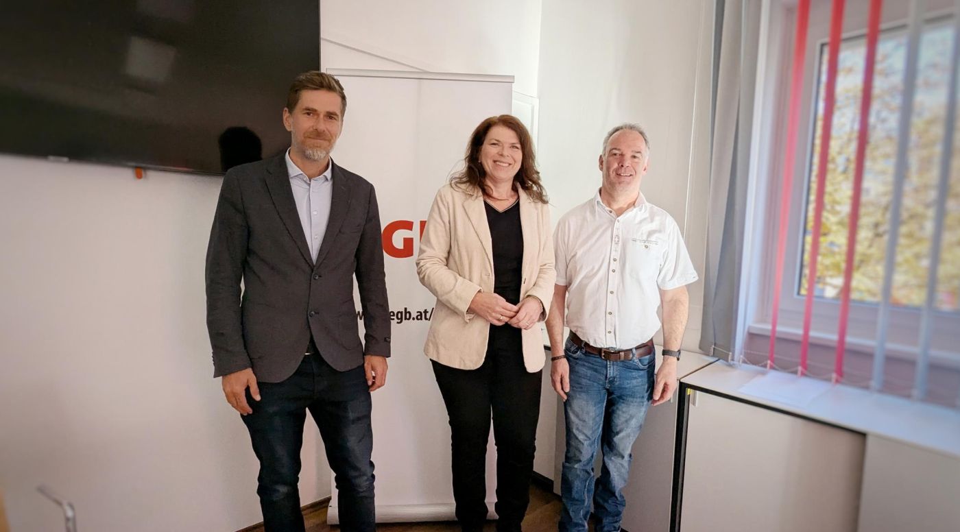 Vl.: ÖGB Landesgeschäftsführer Benjamin Praxmarer, Tiroler ÖGB-Landesvorsitzende Sonja Föger-Kalchschmied und Regionalvorsitzender Martin Strasser Foto: Knorr