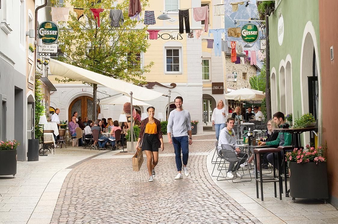 Auch im Zentrum von Lienz ist ein gehbehinderter Mensch und andere Fussgaenger durch das schnelle Radfahren sehr gefaehrdet..
