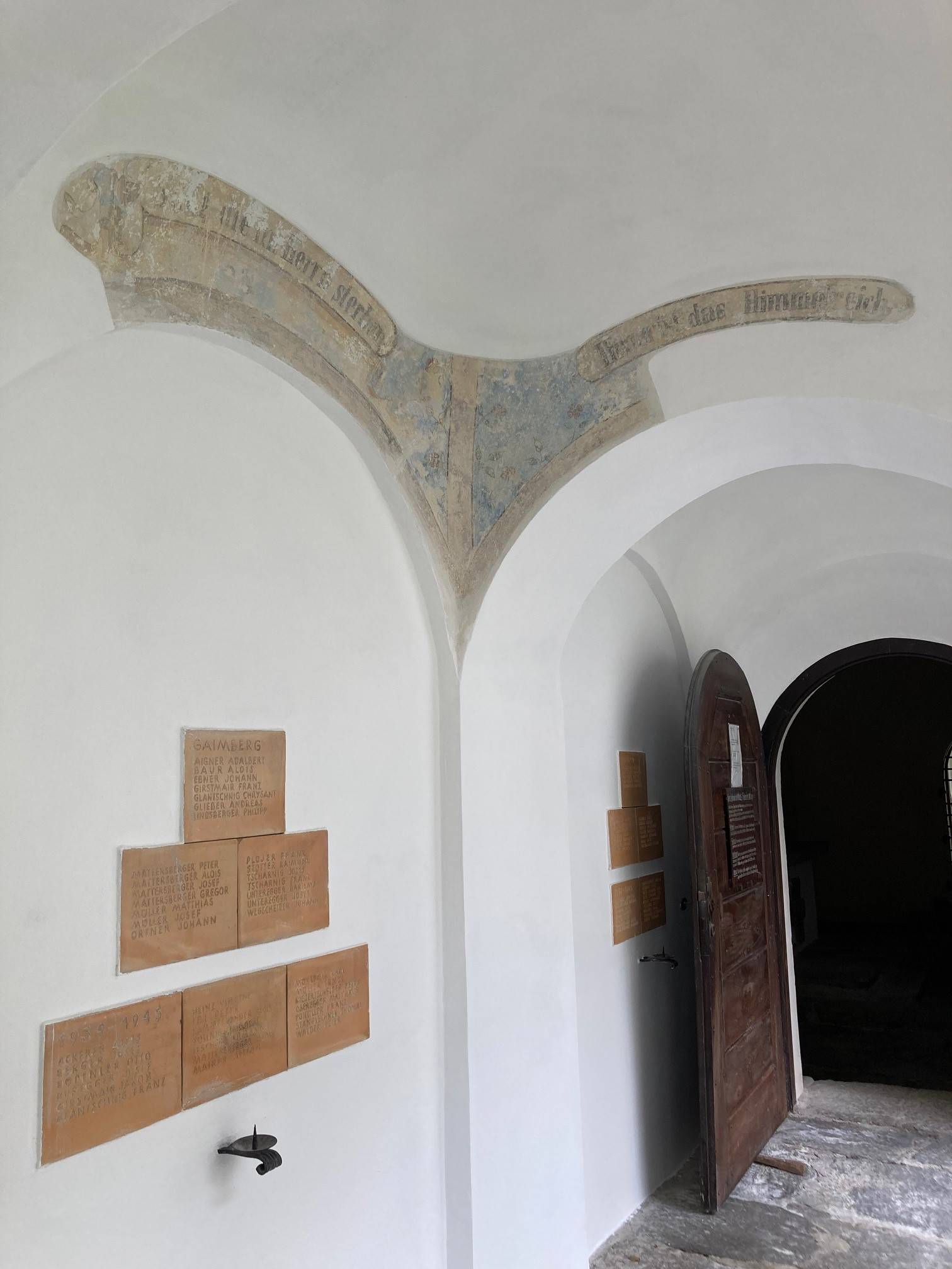 Der neue Schriftzug auf dem Torbogen des frisch restaurierten Bezirkskriegerdenkmals bei der Lienzer Pfarrkirche St. Andrä. Foto: Stangl
