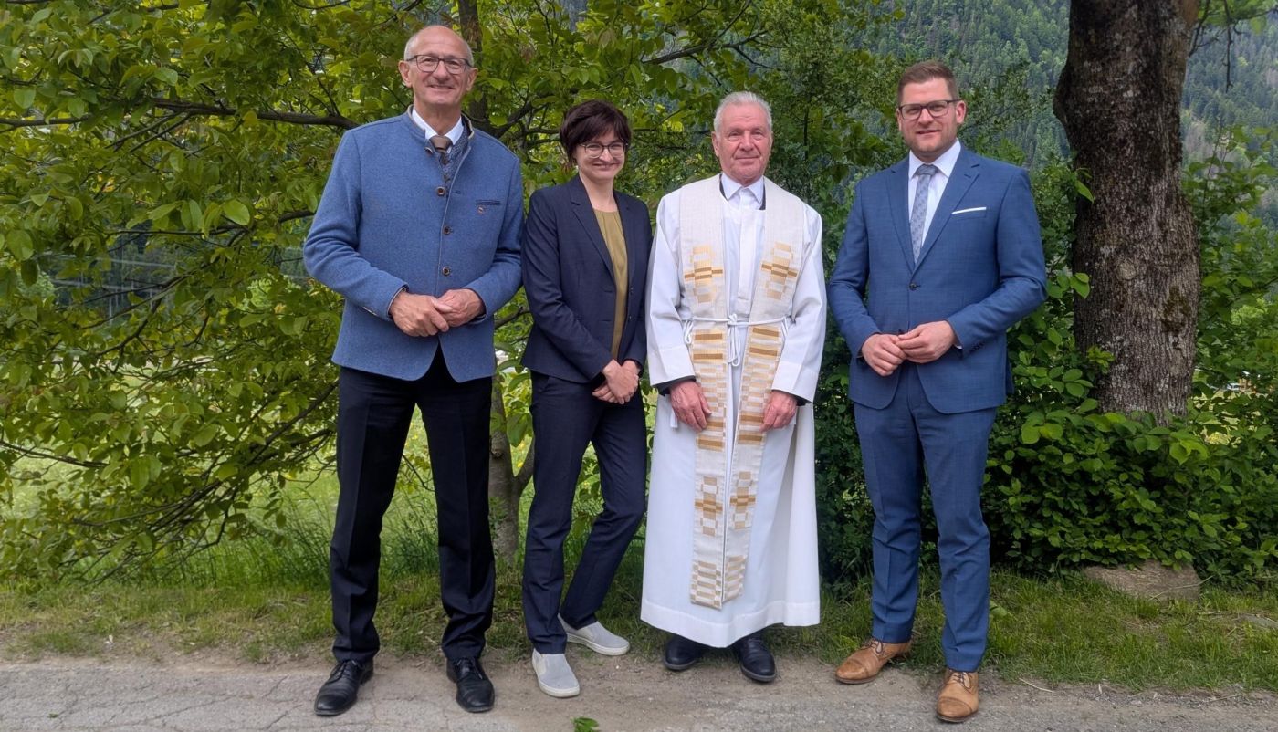 vlnr: LH Anton Mattle, Vize-Bgm. Elisabeth Hainzer, Vikar Stefan Bodner, Bgm. BR Markus Stotter Foto: Knorr