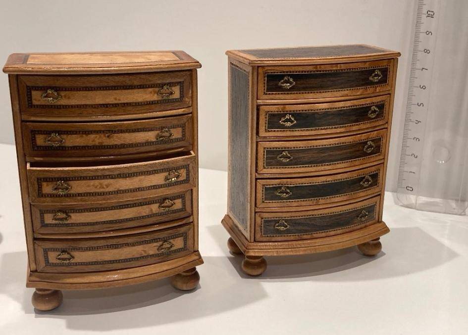 Die Leihgabe umfasst 150 Miniatur-Möbel mit gezinkten Schubladen sowie Einlegearbeiten.