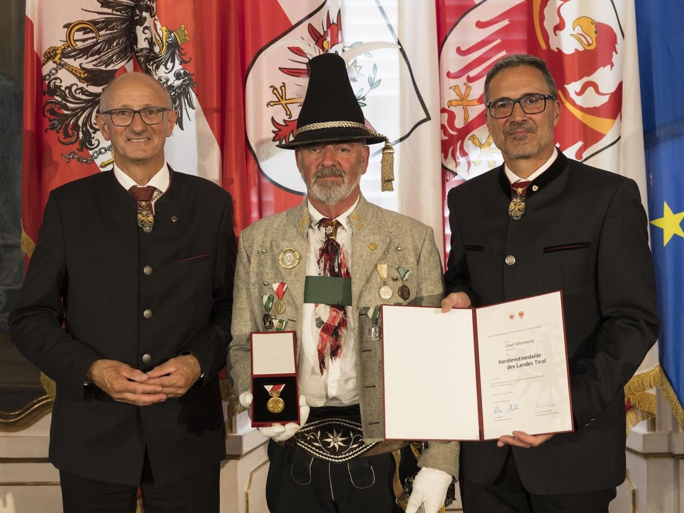 Josef Altenweisl aus Obertilliach wurde für seine Verdienste um das Tiroler Schützenwesen und das gesellschaftliche Leben in Osttirol mit der Verdienstmedaille ausgezeichnet. Foto: Land Tirol/Sedlak