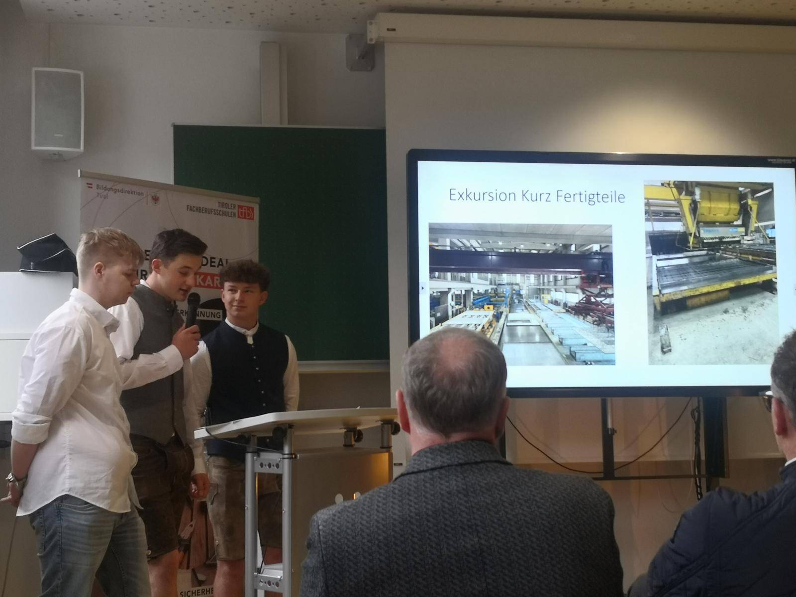 Am Freitag, den 25. April versammelten sich 16 Hochbaulehrlinge in der Tiroler Fachberufsschule Lienz. In Vorträgen präsentierten sie ihre Lehrbetriebe, bekamen die Zeugnisse überreicht und bedankten sich mit originellen Geschenken bei Lehrpersonen und Direktor.